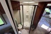 The mid-section washroom, comes with a toilet, sink and large shower cubicle with full enclosure and then large cupboard. There are doors to the bedroom and then into the forward area.