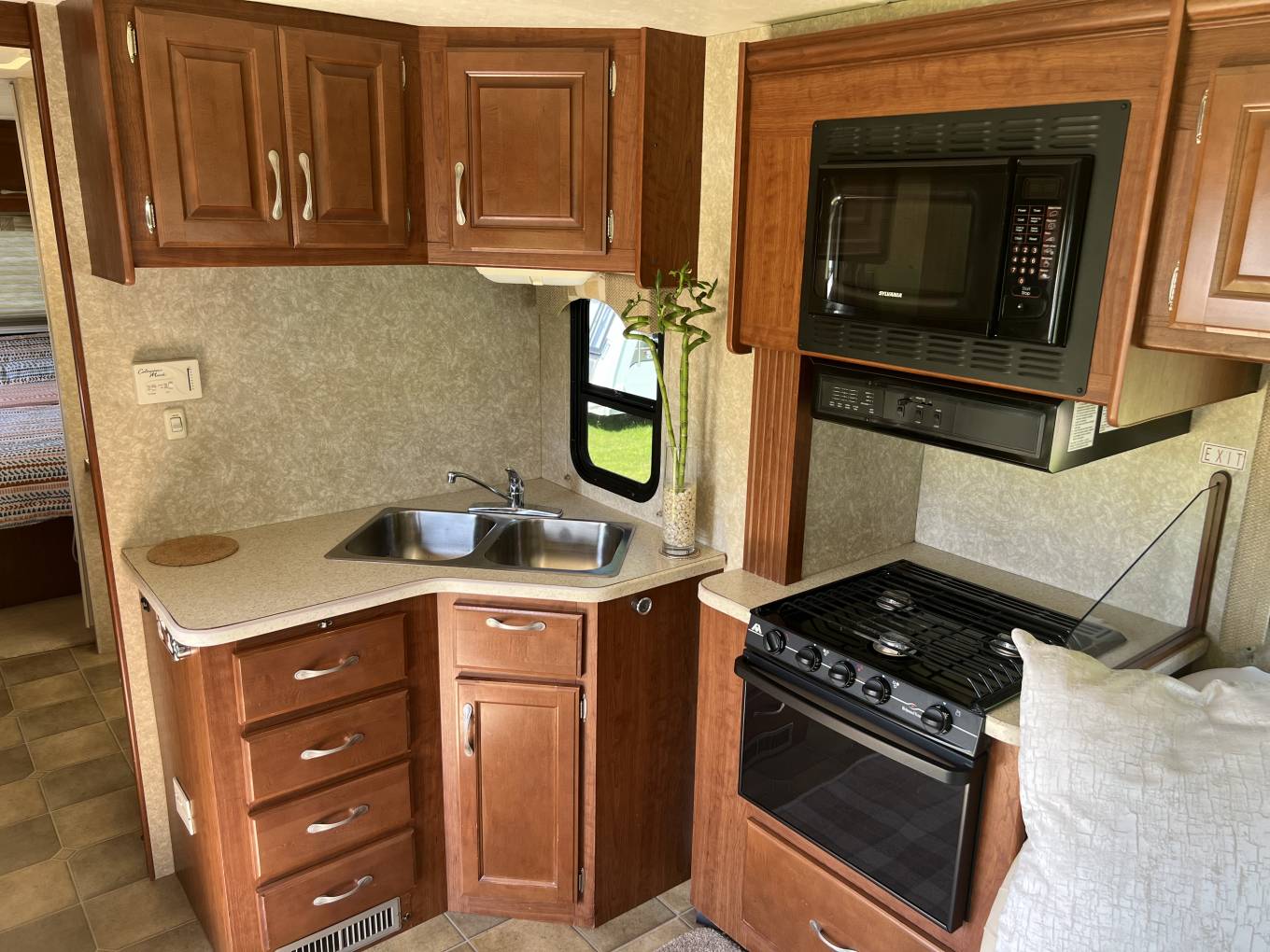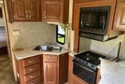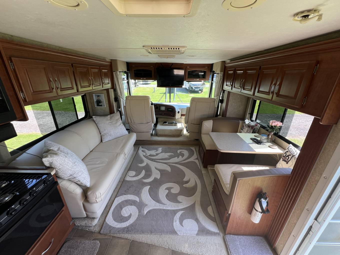 In the cab, both seats’ swivels, there is CD/ radio, remote control for self-levelling, rear view camera and a view that only an RV can provide.