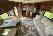 Internally, the layout comprises, rear bedroom, mid-section washroom, then open plan kitchen, lounge and dining area, all in excellent condition and all upholstery is leather. In the lockers and externally is a petrol generator, towbar, 2 electric slide -outs with canopy and self-levelling “jack” system.