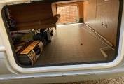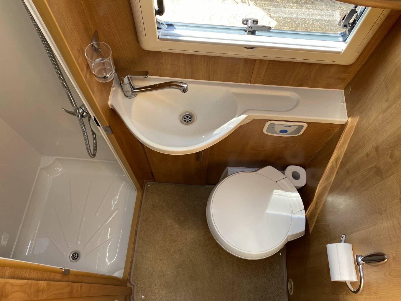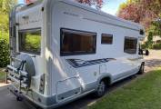Outside there is a wind out awning, access to rear storage from both sides, garage light and power, reversing camera, 3 bike cycle rack, alloy wheels, towbar with bumper bar, gas locker with space for two bottles, electric entry step, roof access ladder, spare wheel, Bullfinch external gas BBQ point, Bullfinch external shower point, alarm system, solar panel, lower pannier locker, rear steadies, space for two leisure batteries, cross-climate tyres and mains hook up point.