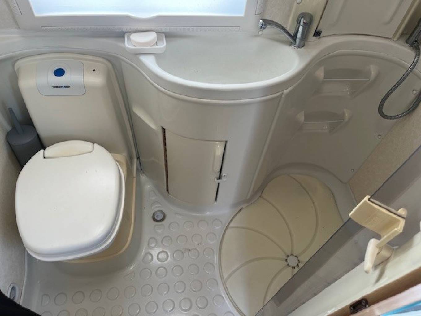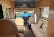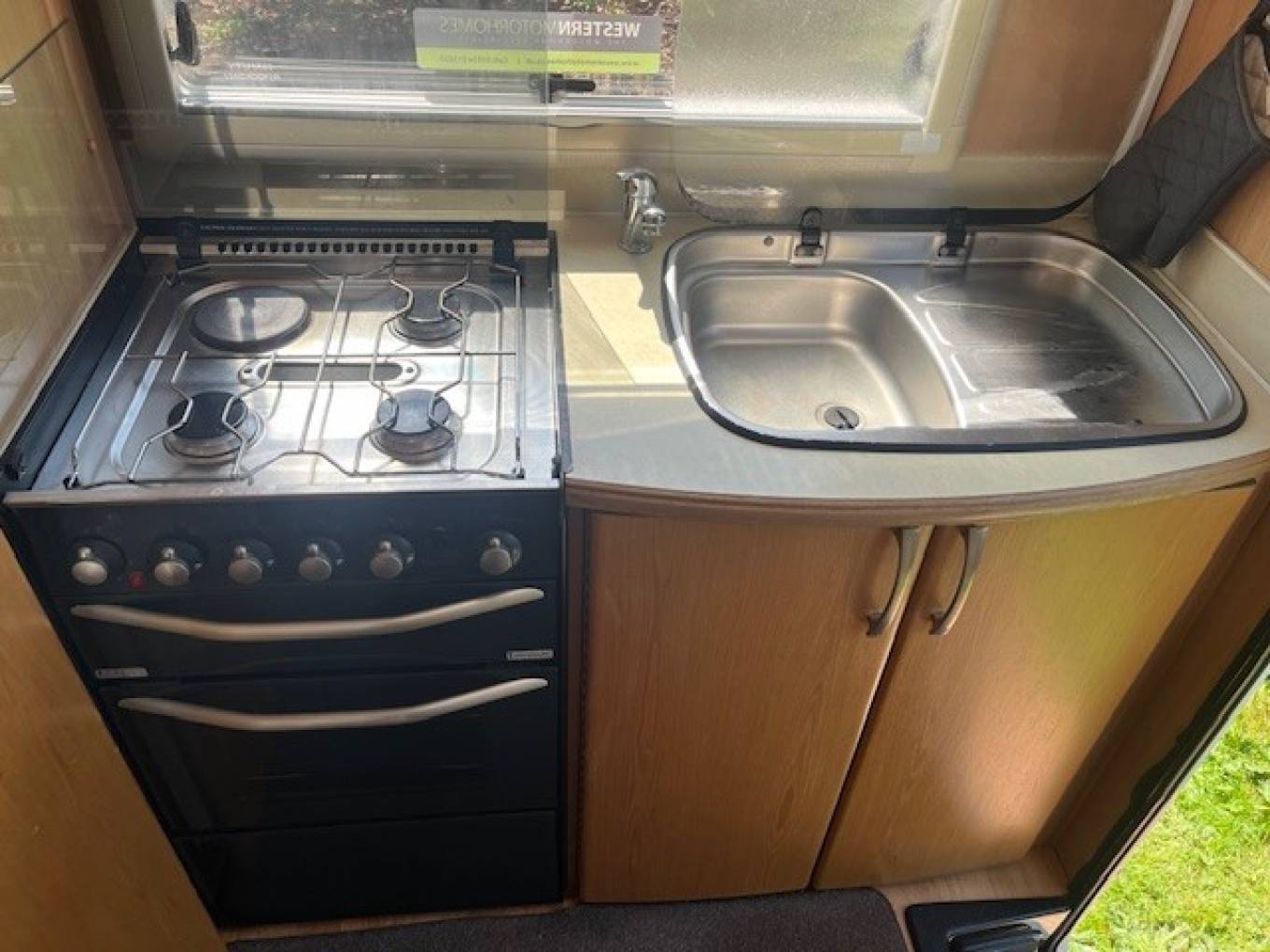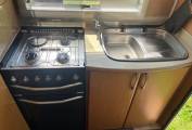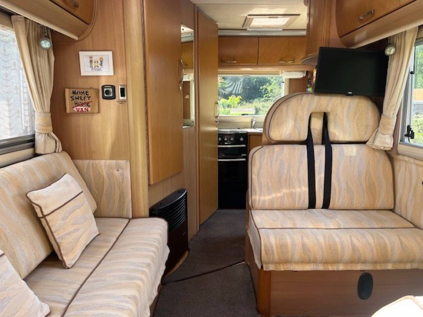 The Motorhome benefits from an End Kitchen Layout with Full Oven, Hob, Grill, Sink plus Three Way Fridge Freezer