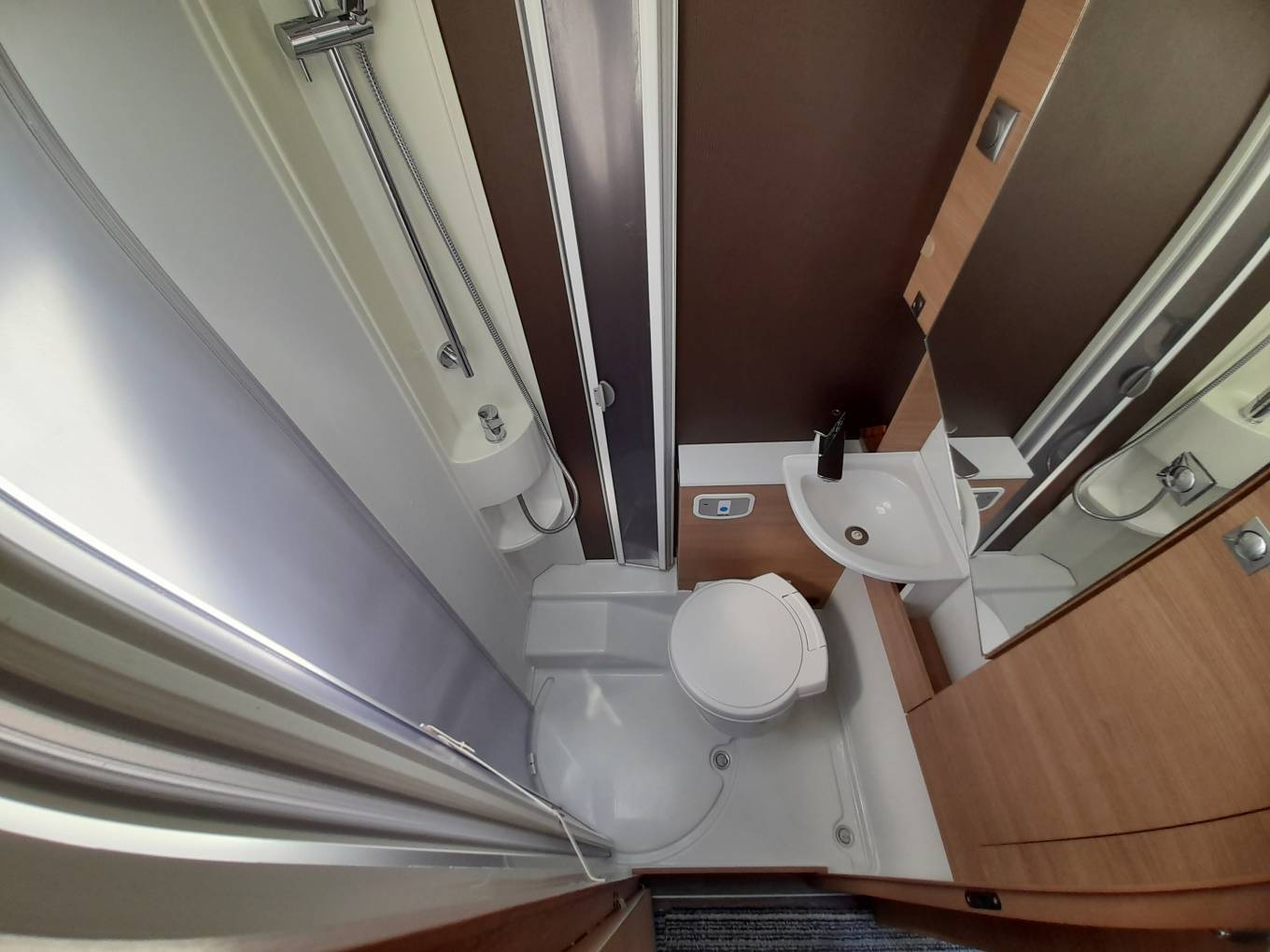 Washroom - Electric flush cassette toilet - Sink – Shower with screen.