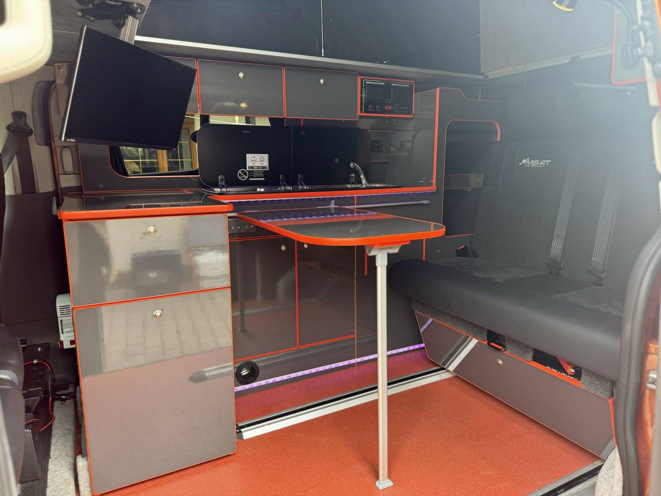 Additional features include a TV, porta-potti, twin awning rails, upgraded front and rear speakers, and door soundproofing. The camper also benefits from an external shower point and a Meta Trak vehicle tracker for added peace of mind. An aftermarket Maxhaust system has been installed, giving the vehicle a V8-style engine note, which is customisable via a dedicated app.