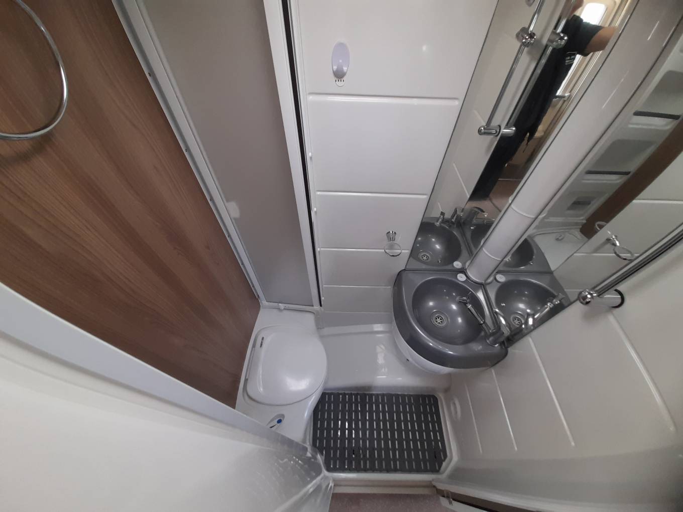 Washroom - Electric flush cassette toilet - Wash basin and Shower with folding screen.