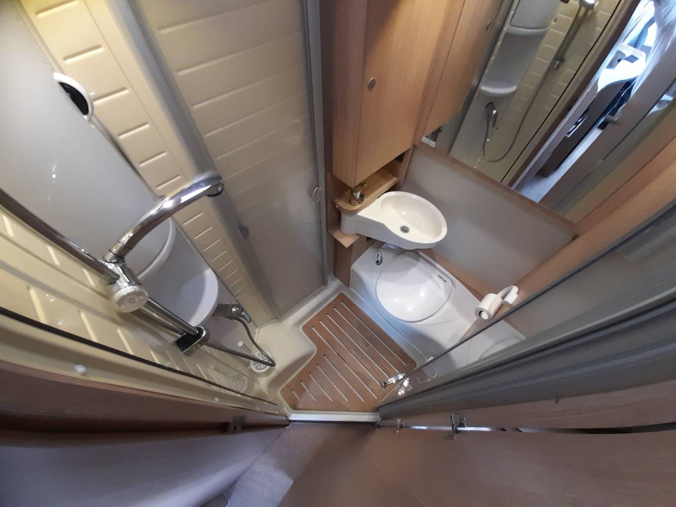Washroom - Electric flush cassette toilet - Swivel Sink – Shower with screen.
