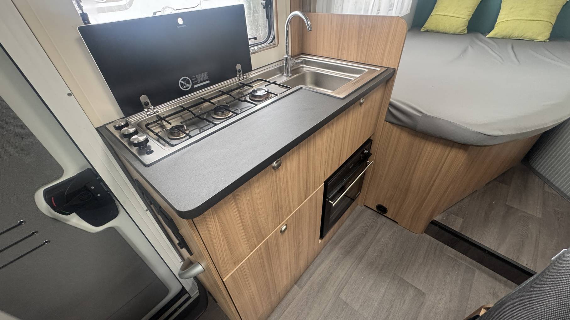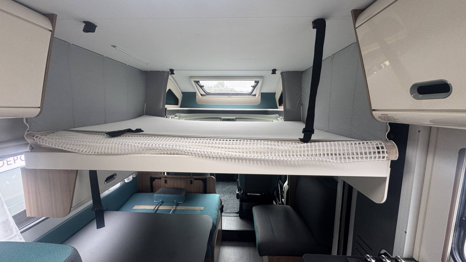 The Sunliving S70 DF is cleverly designed to feel roomy while remaining easy to drive and park. The fixed rear double bed offers excellent sleeping comfort with a huge garage underneath, and the front lounge easily transforms into a second double bed.