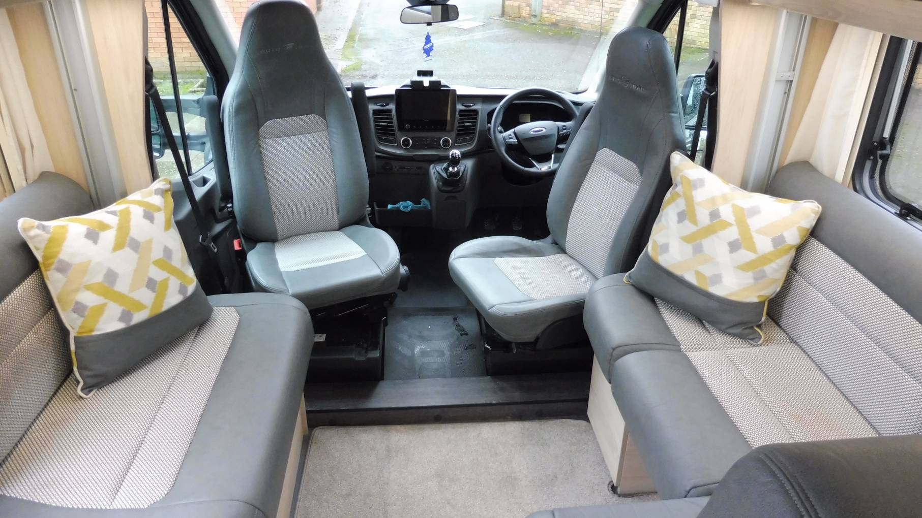 The motorhome sits on the 170bhp Ford chassis and the cab is well-appointed with air-con, cruise control Xzent touch screen entertainment centre with navigation, reversing camera and pleated cab blinds.