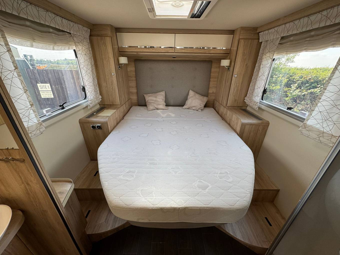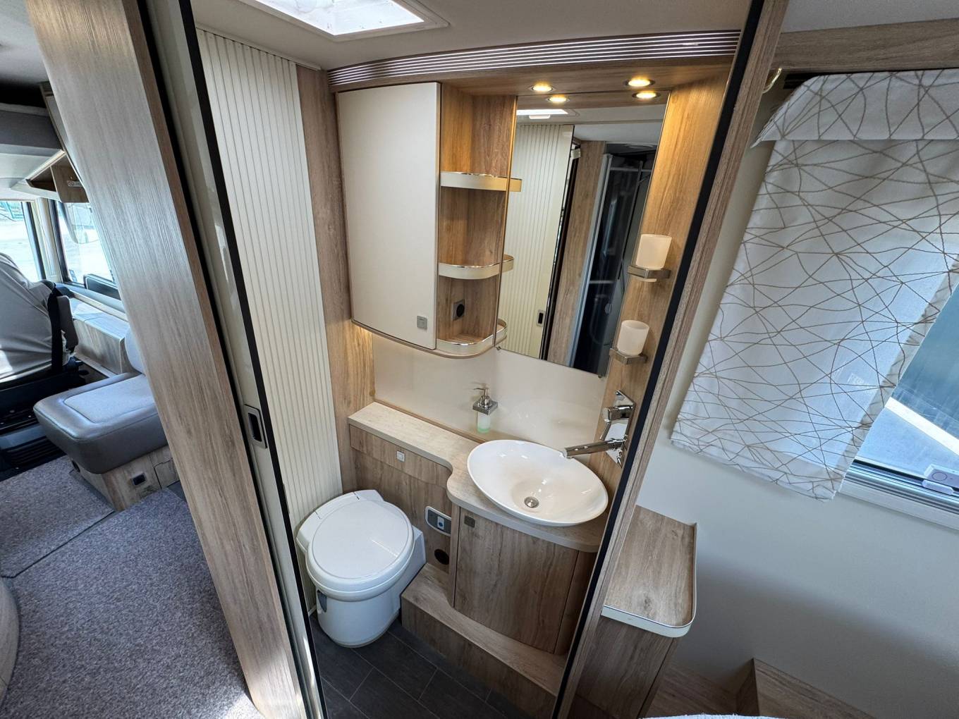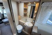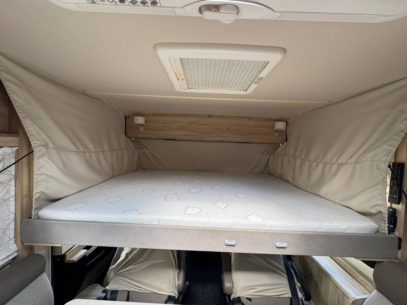 Further back, the 720QF continues to impress with its separate shower and toilet facilities, offering both privacy and practicality. Sleeping arrangements are luxurious and flexible, with a full-sized island bed at the rear for maximum comfort and an additional drop-down bed over the cab, allowing this motorhome to comfortably sleep up to four people.