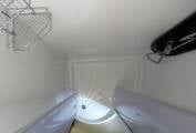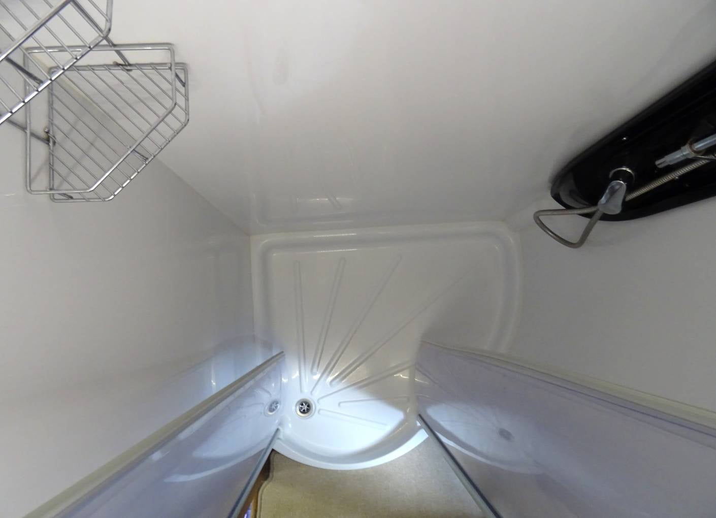 Moving forwards you will next come to the washroom. This area has been split down the middle so on the passenger side you have your cassette toilet and bespoke vanity basin unit and on the driver side you have your full separate shower cubicle. There is a jack and jill door which separates the sleeping and living quarters.