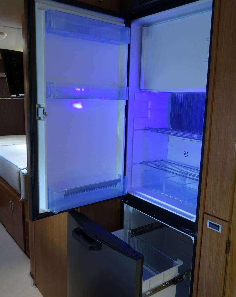 At the very front you have a wonderful lounge area with two large opposing bench seats. The entirety of the lounge has high level lockers perfectly suited to hold all your personal belongings. In addition to this you will find two large storage spaces directly below both of your lounge seats. Including the swivel seats this lounge can easily entertain 8 adults at any given time. The front lounge also has a TV for entertainment and a large stow away table which is big enough for everyone to access who Is using the lounge.
