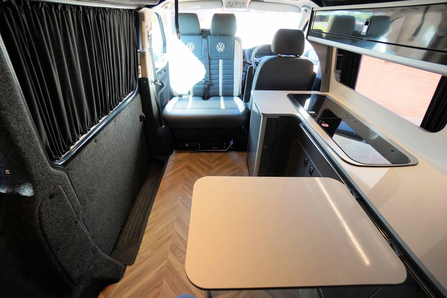 For sale we have a 2016 VW T6 Transporter, LWB pop-top campervan with 4-berths with 4-seatbelts. Professionally converted by SK Campers in 2021.