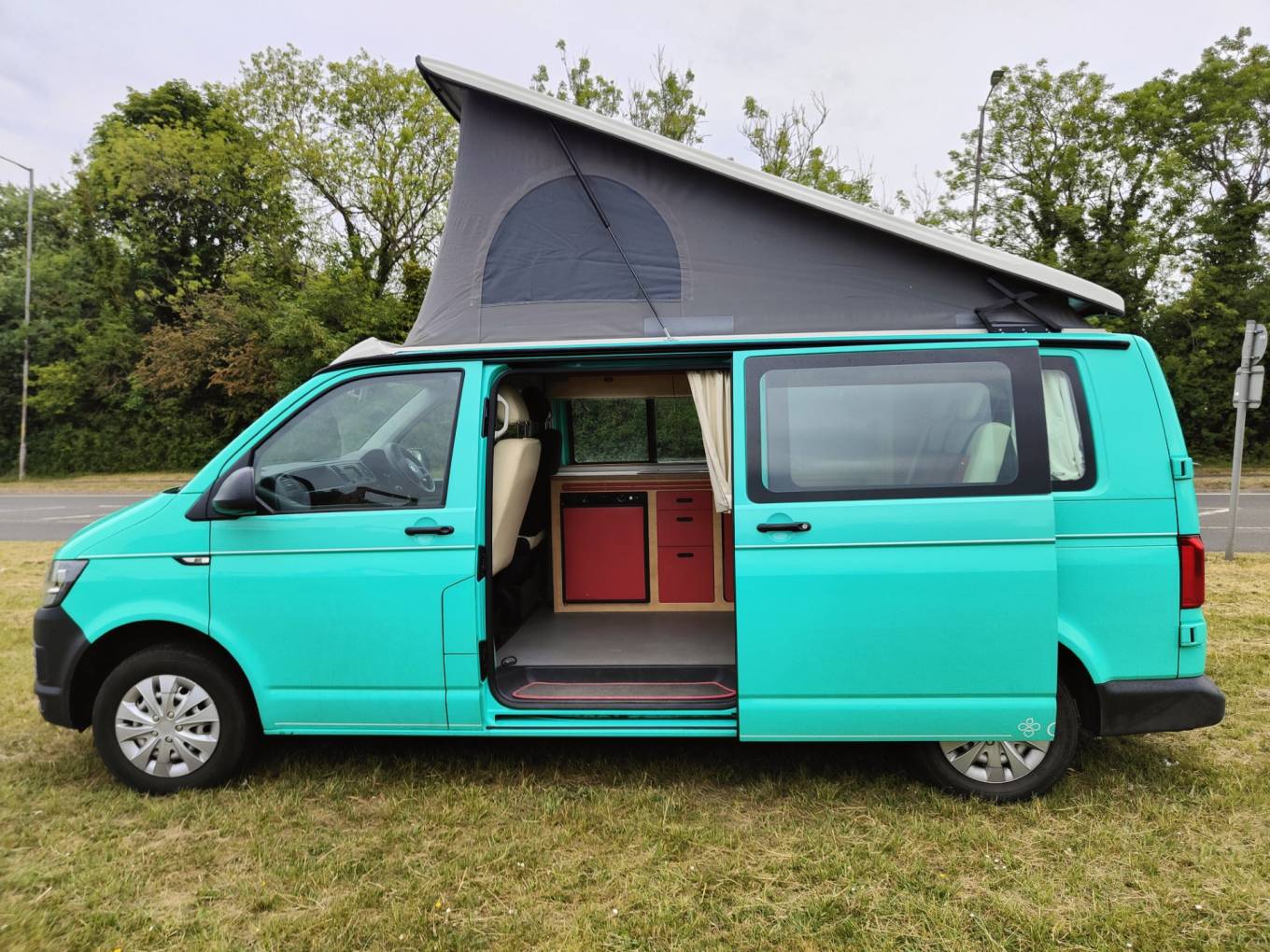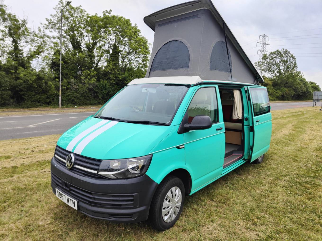 A really good example of what can be achieved in a compact camper. This 2018 registered VW Cambee conversion has the elevating roof with a substantial bed in the roof with a double down below so a 4 berth with 4 proper seatbelts. With only 61k miles from new and with a very recent service and a cambelt and water pump replacement fairly recent, this lovely camper is ready to go. Ideal for a young family or a couple that like to explore and includes an awning so no issue with space. Includes a roof mounted solar panel and cab aircon. Great condition and a great colour. Based in Kent and more pictures available.