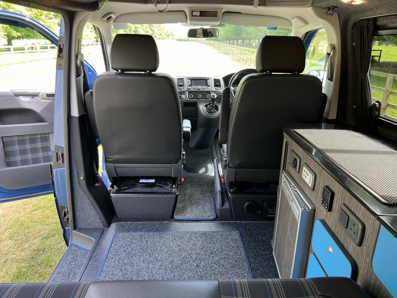 Call with any questions on 01423 609985. This type of Volkswagen, registered in 2015, rarely comes to market. It is in immaculate condition inside and out, including full service history and whole host of extras. A VW T-5.1, T-32 4 Motion, Highline, 140bhp, converted by Dubtricks (near Harrogate) for the current owners in 2017.