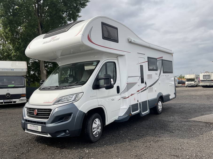 2018 Rollerteam Auto-Roller 746 motorhome, a 6 berth and 6 belt, with large rear U shape lounge layout. Powered and based on the proven Fiat Ducato 2.3 multi-jet diesel engine and chassis, in conjunction with a six speed manual gearbox, power steering and includes the factory optional upgrade of Drivers Pack, cruise control, driver and passenger airbags, multi-function steering wheel, radio with Bluetooth, electrically adjustable wing mirrors, electric cab windows and air-conditioning. This motorhome can provide very comfortable accommodation with a modern design feel and living space for an average sized family or group of adults.