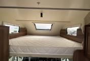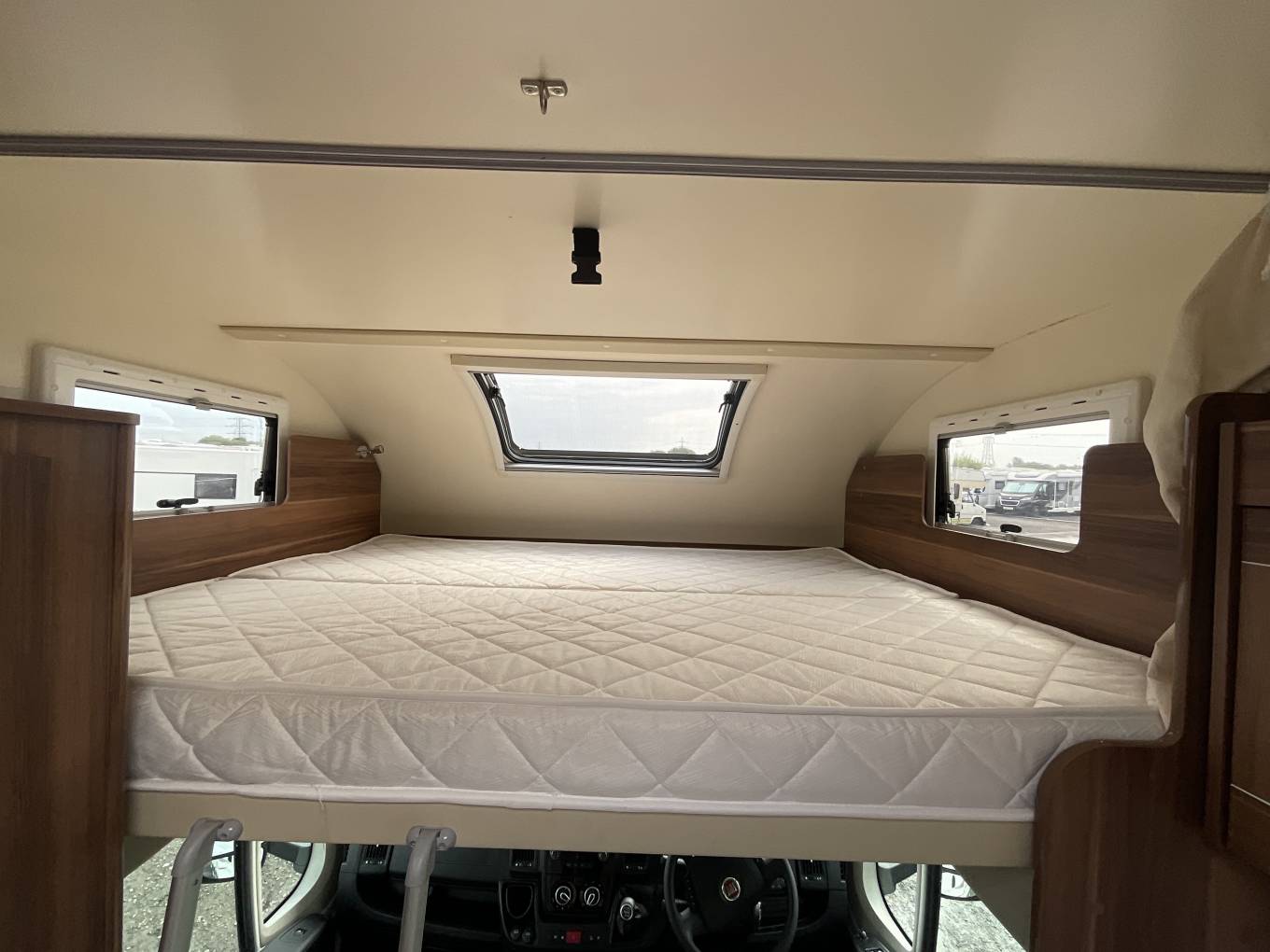 Adjacent the quality design theme continues into the dinette area with Roman blinds and comfortable seating incorporating four passenger seat belts and finally, there’s the generous over cab double bed which is over six feet long and over five feet wide, with two reading lights and windows with fly screens and blinds. On the outside is a four bike cycle carrier, Solar panel, side lockers, external gas BBQ point, reversing camera and two gas bottles. The motorhome has had an annual mechanical and habitation service completed in November 2024 and is ready to go.