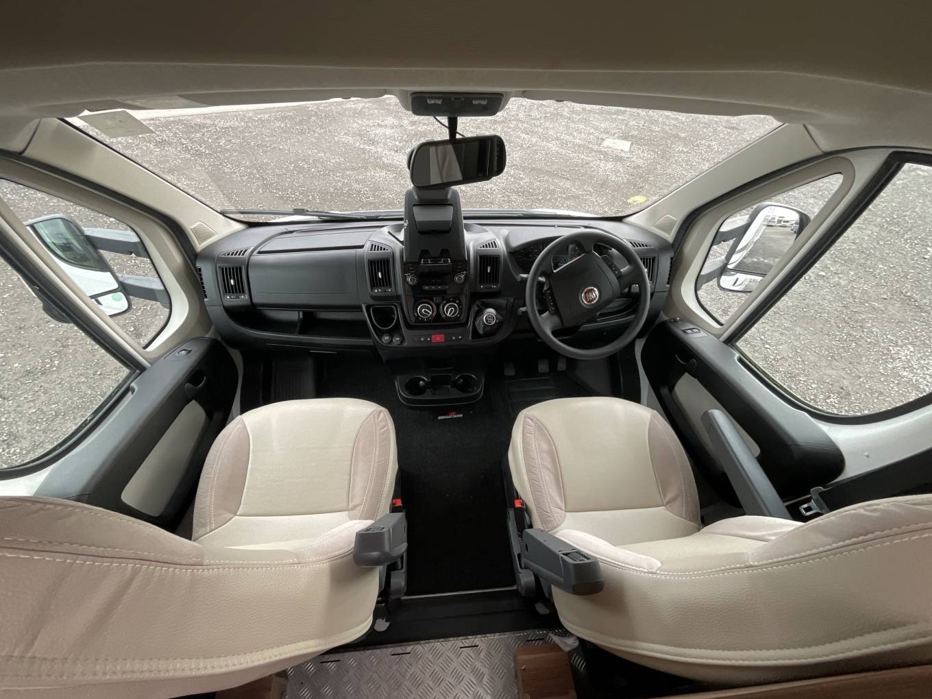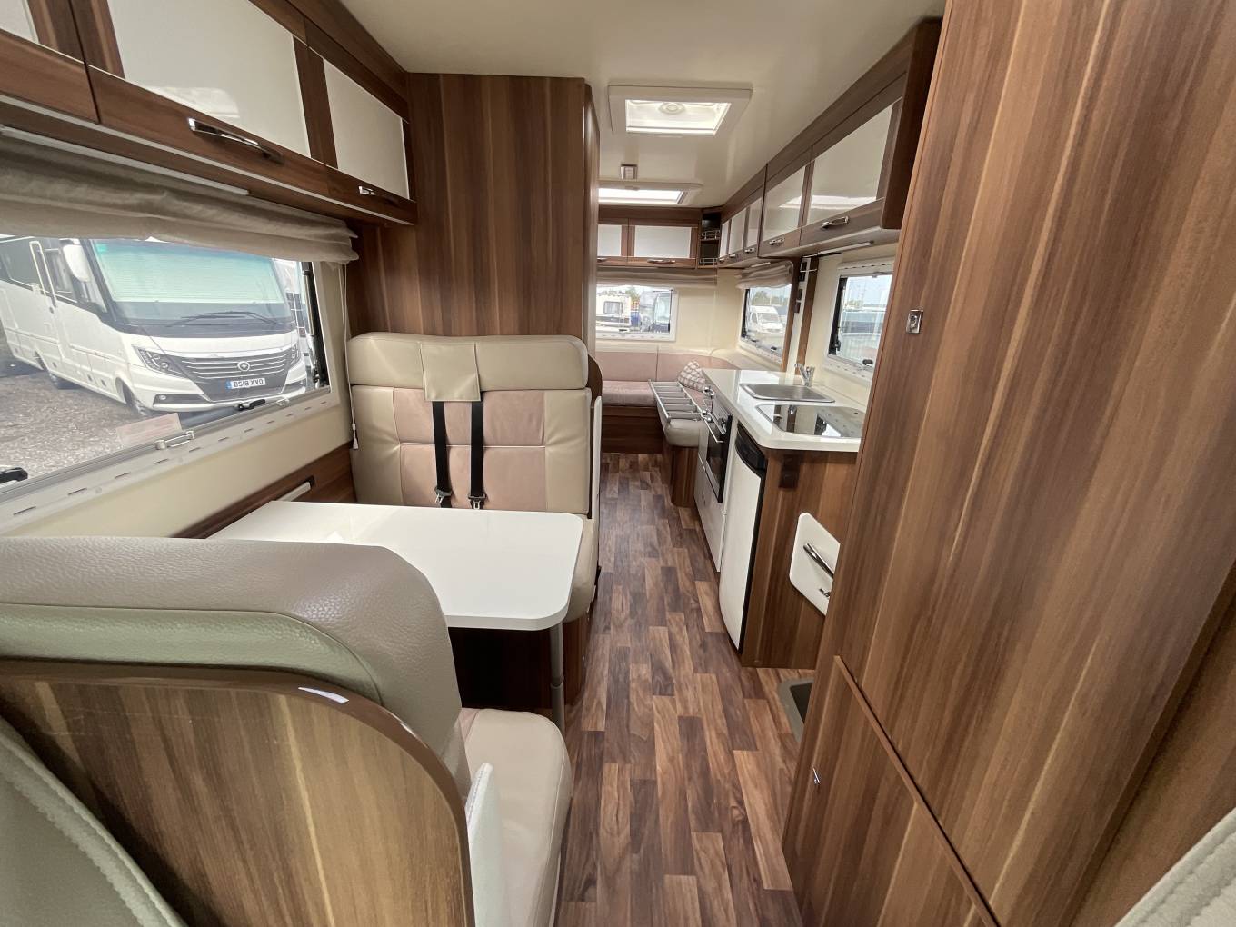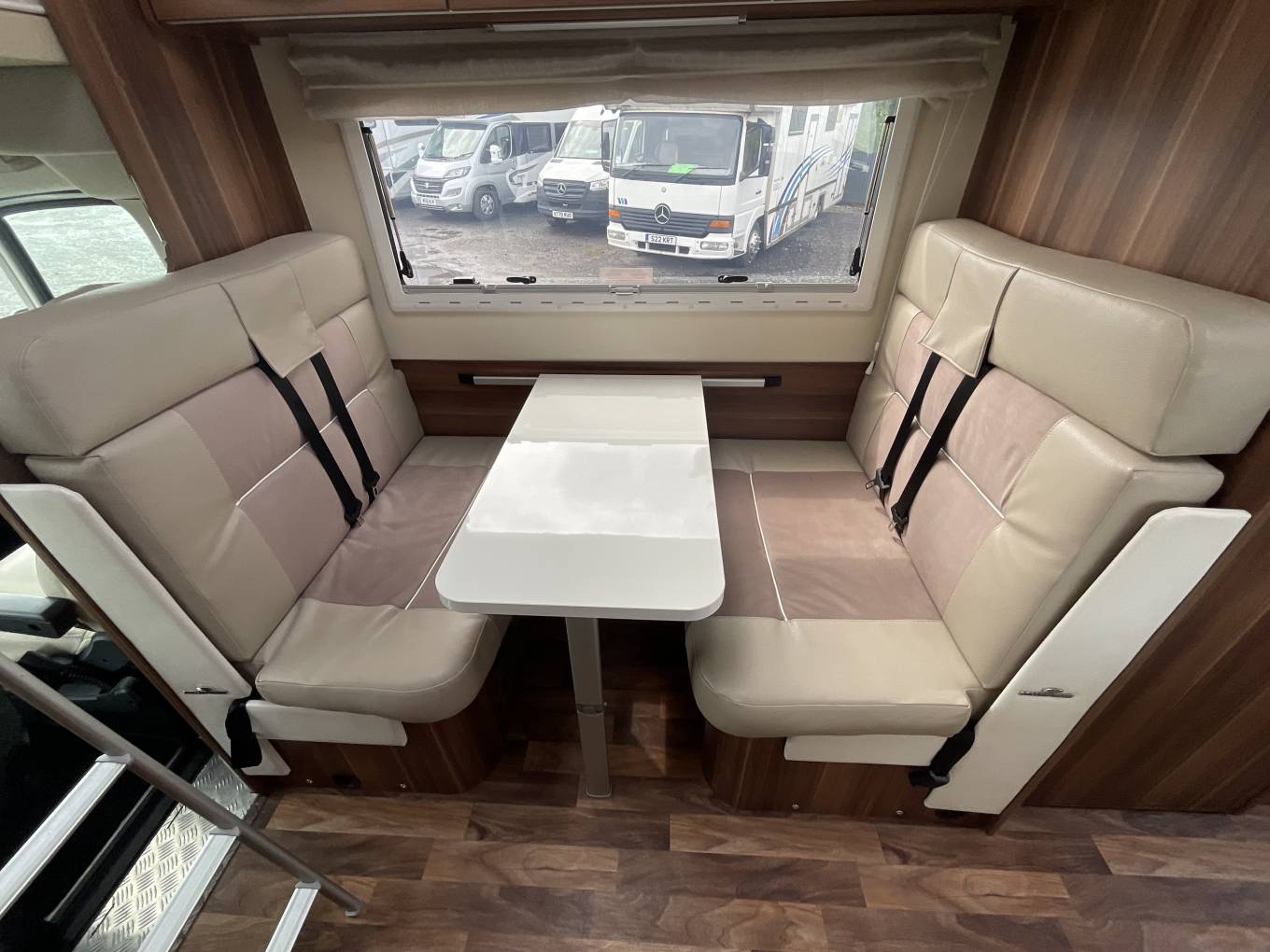 The layout is a UK favorite, even down to the habitation door being on the nearside of the vehicle and features a front pullman dinette and a rear U-shaped lounge. It’s a six-berth with six belts, plated at 3,650kg, so C1 will be required to drive this vehicle.