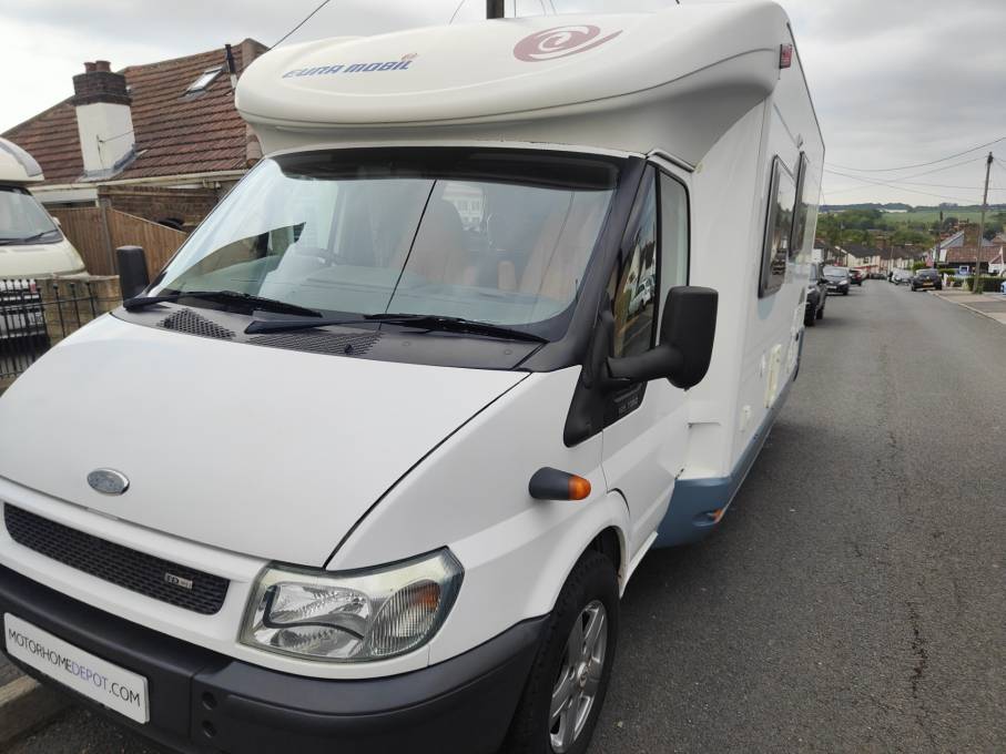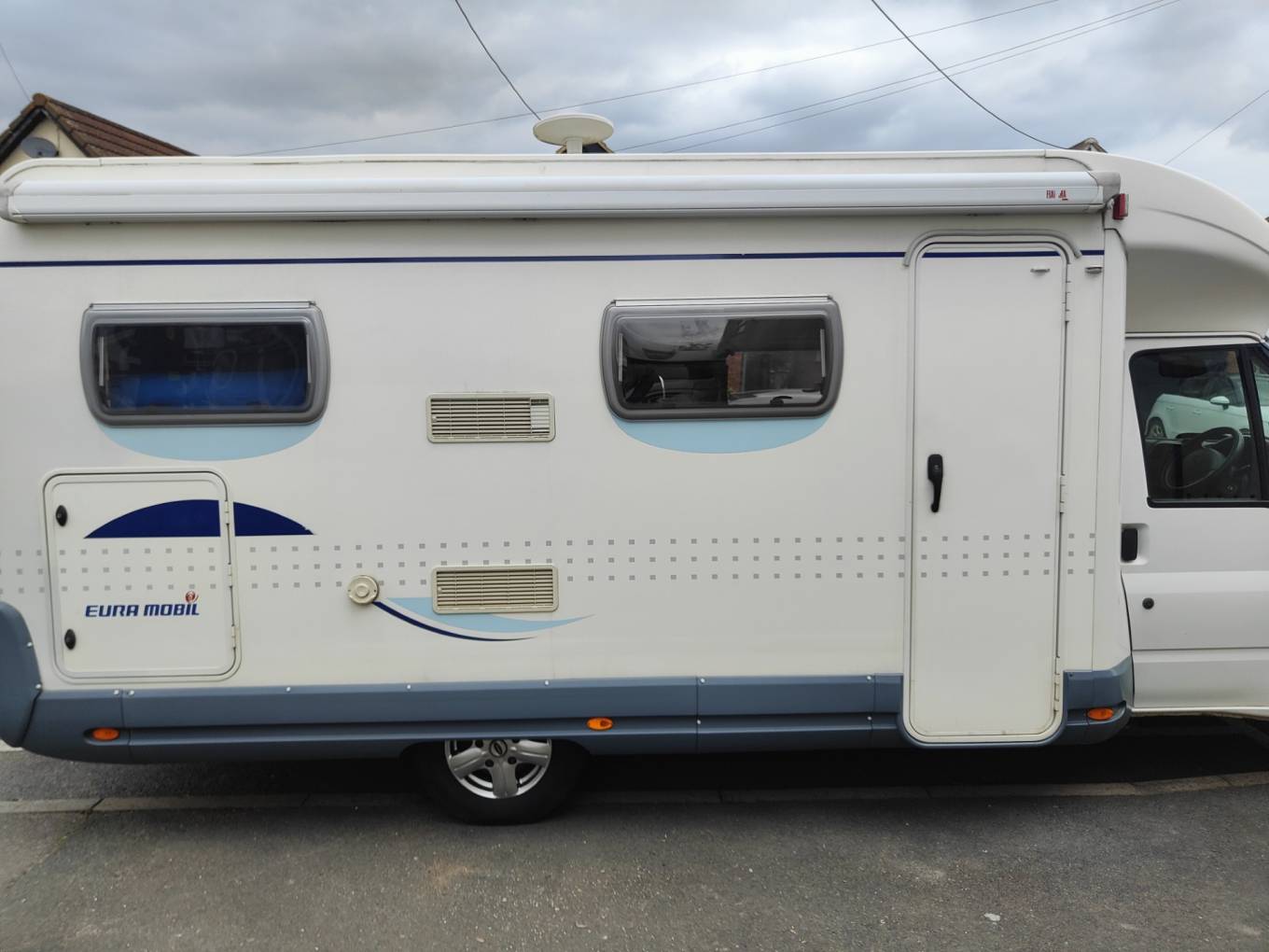 This is a great little example of the Euramobil Profila. This 6.4 metre long low profile motorhome weighs in at 3500kgs so can be driven by all and features a large fixed bed to the rear with a huge storage space underneath. With a front seating area that utilises the swivelling passenger seat and a third seatbelt, this 3 berth, 3 belt model will make a great van for someone. With a well equipped kitchen and bathroom with separate shower, there really is no compromise. Includes an awning, solar panel, tv aerial and tv and cab aircon. Based on the robust and reliable Ford Transit chassis with a five speed manual gearbox. 42k miles from new. Mot until May 26. Recent tyres all round. Based in Kent and more pictures available.