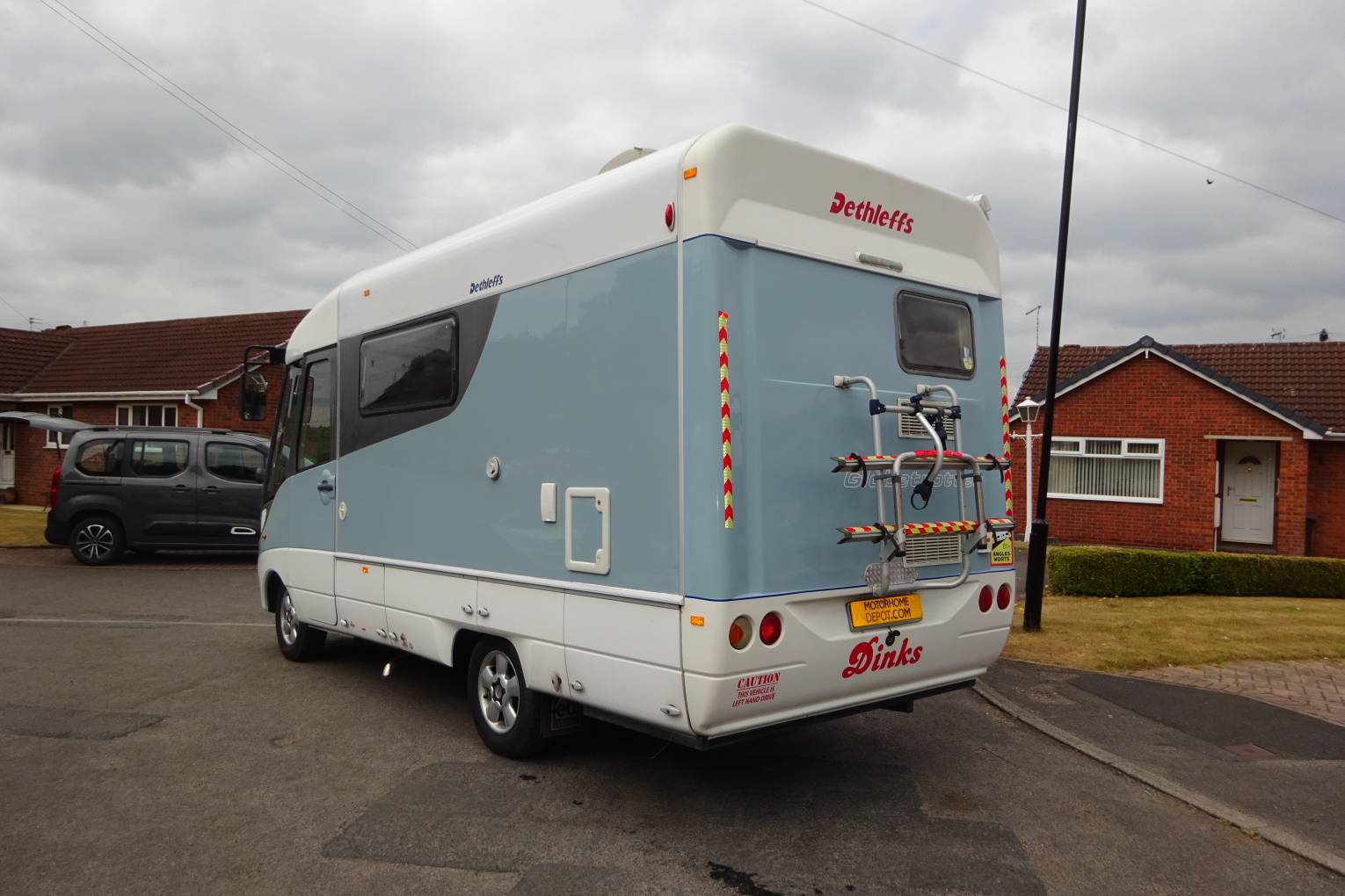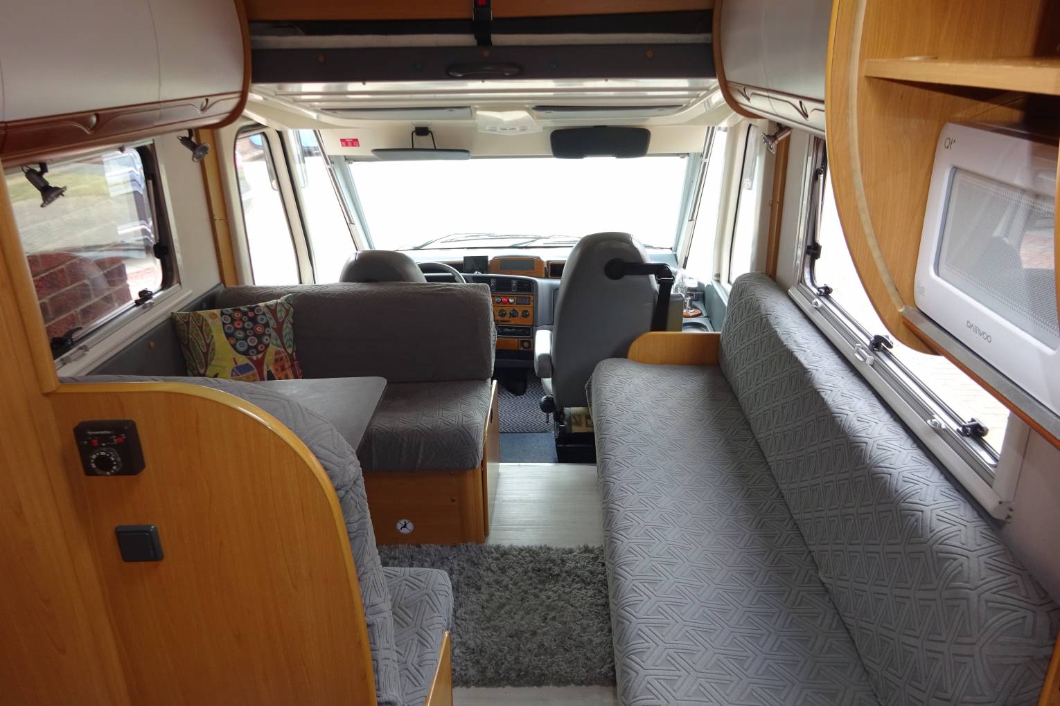 On the outside of the Motorhome there is a reversing camera, roll out awning, outside bbq point and bike rack. It has ample storage compartments allowing for those extra home comforts. The motorhome is great for those loving the outdoor life and those who like the home comforts of a luxury motorhome. It is a high class motorhome with 4 seatbelts, at an affordable price, making for a great family motorhome.