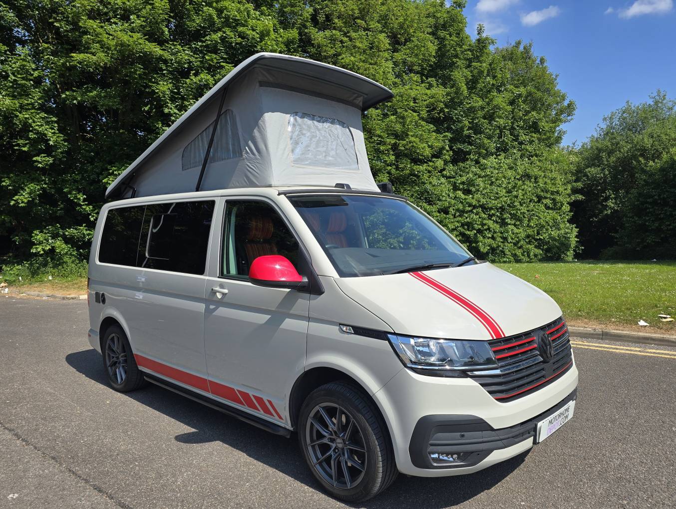 Motorhome Depot are pleased to present this 2021 VW T6.1 Highline, Camper King Monte Carlo. Camper King have won the Campervan Converter of the Year in 2023 and 2024, and have a great reputation within the VW community for carrying out great quality conversions with great attention to detail. This level of quality and attention to detail can be seen throughout this camper making it really stand out from the rest.