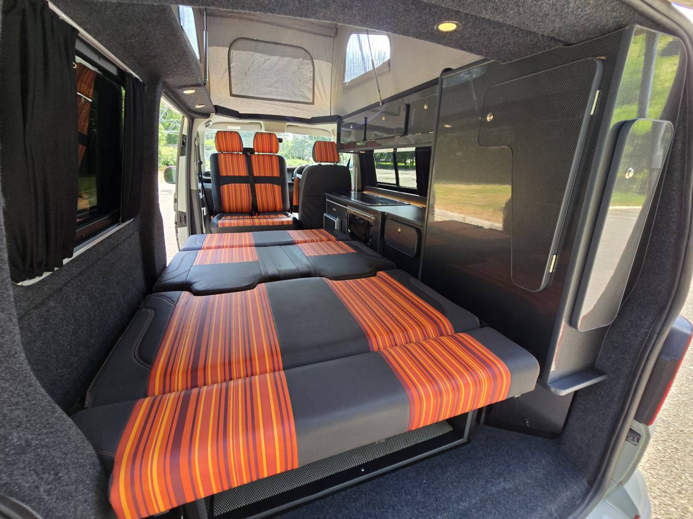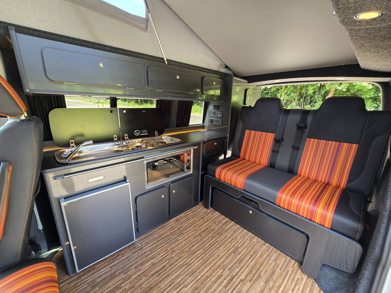 This camper has some great features and extras, which include; 18” Alloy Wheels, Stunning Black and Orange Interior, Diesel Heating, Double Swivel Seat, Dometic Wind Out Canopy, Heated Front Screen, Grill, Automatic Headlights, USB points and a Wireless Charging pad, Adaptive Cruise Control, Front and Rear Parking Sensors, Onboard Water, Cab Air Con, Head unit with Android Auto/Apple Car Play, Rear Tailgate, Electronic Folding Mirrors, x2 Tables and so much more.,