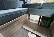 The double front passenger seats both have storage underneath which is a lovely touch and in the rear under the lounge seat you have storage and can store a Porta Potti perfectly as shown in the photos, the little 'hub behind the passenger seats not only helps make the bed but you can sit and relax there and it also acts a large storage unit.
