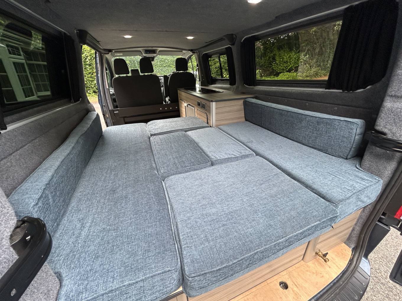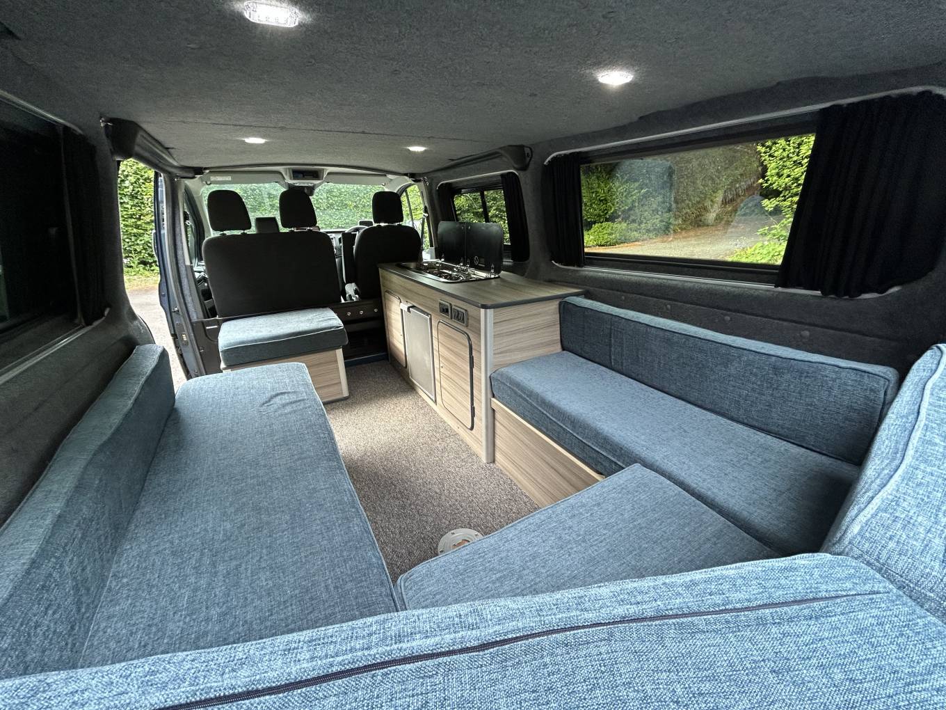 Motorhome Depot Cornwall are proud to present this unique and stand out 2022 Ford Transit Custom 300, which is a 2 berth 3 belt conversion that has been well built and offers something different than other similar conversions with the rear lounge!