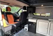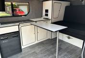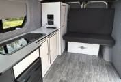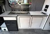 The clever interior includes a rock 'n' roll bed for effortless conversion from lounge to sleeping area, while the pop-top roof adds standing room and ventilation. A double swivel passenger seat maximises living space, creating a flexible dining or relaxation zone. For entertainment and convenience, the campervan comes equipped with a 12V fridge, a Smart TV (12V/240V compatible) and multiple USB & 240V sockets to keep devices charged.