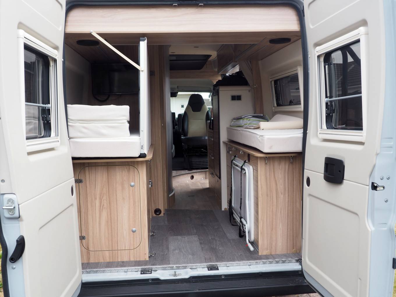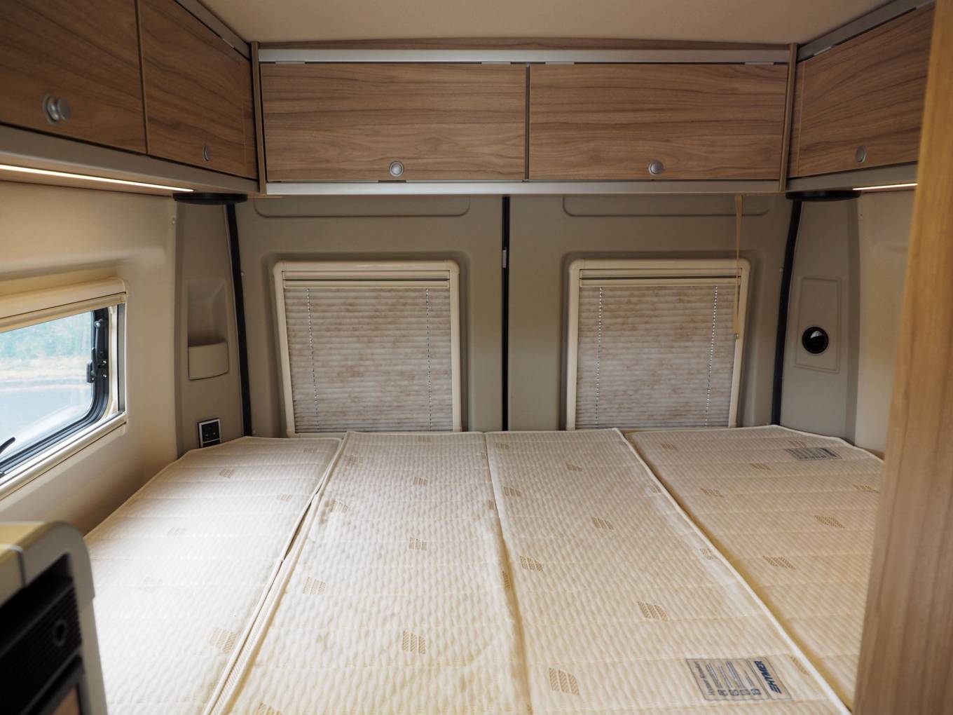 Domestic facilities include fresh and waste water tanks, diesel fuelled heating and hot water, touch lighting UK sockets and USB points, while the cab offers digital climate control, electric folding mirrors, infotainment system, cruise control and reversing camera, integrated night blinds.