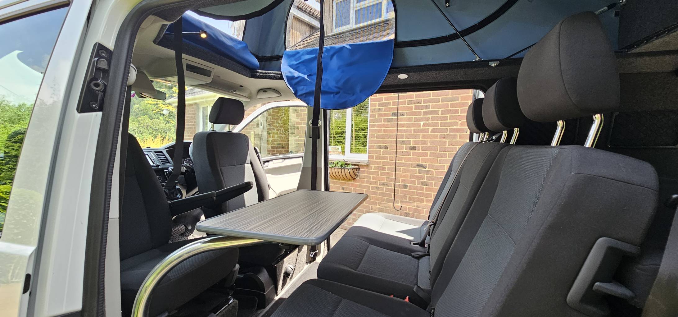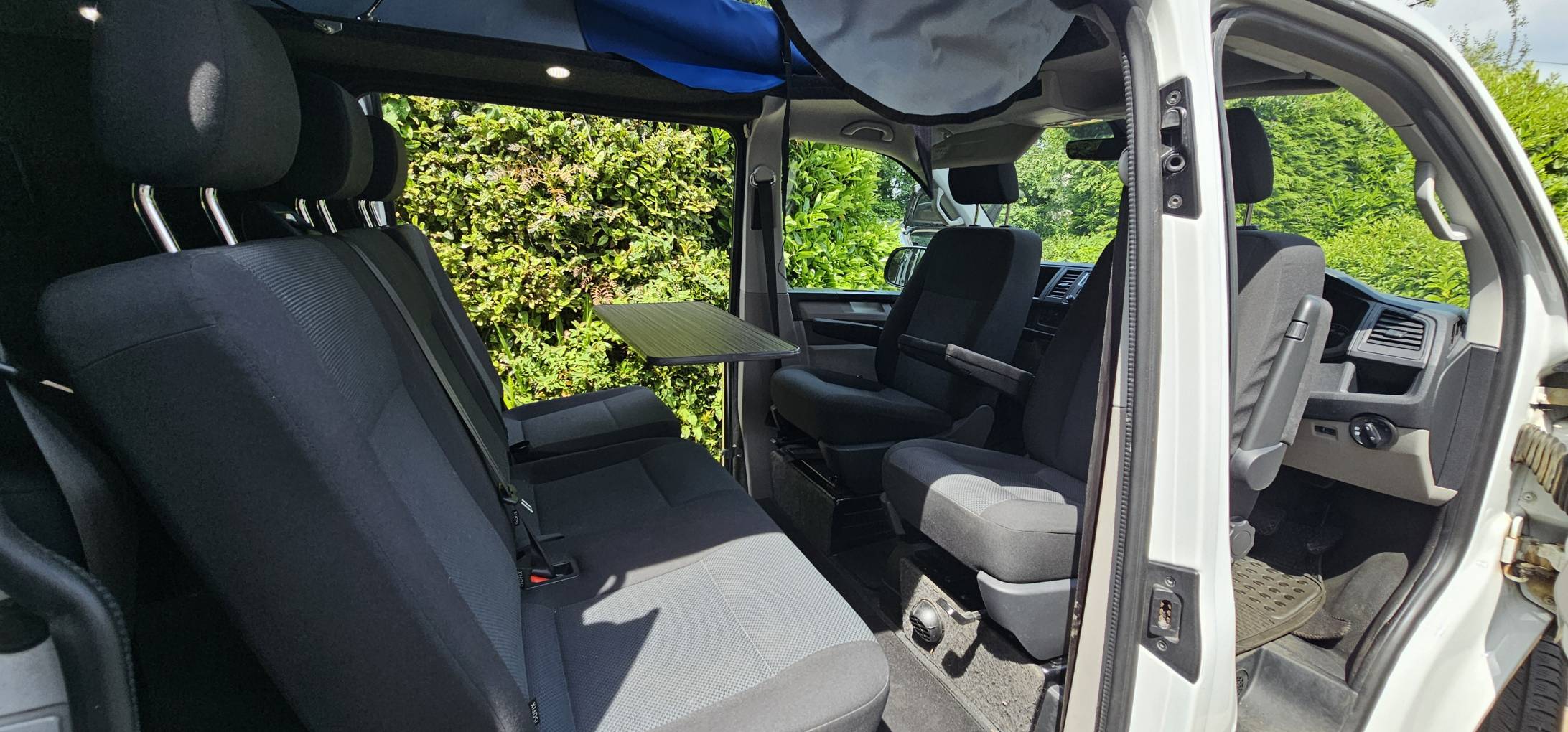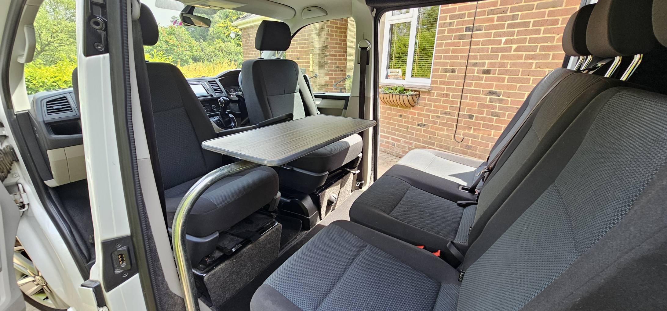 Both front seats swivel and there is a small table stowed in the boot along with a leg to provide a base on which to dine etc.