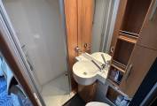 Layout - Starting at the rear, this model features the very sought after fixed double bed. Underneath the bed you have the very generous garage space that can be accessed from outside the vehicle as well as inside the van. To the right of the bed, we find the large washroom this is well equipped and comes with the desired separate shower cubicle, toilet cassette, vanity mirror, storage and washbasin.