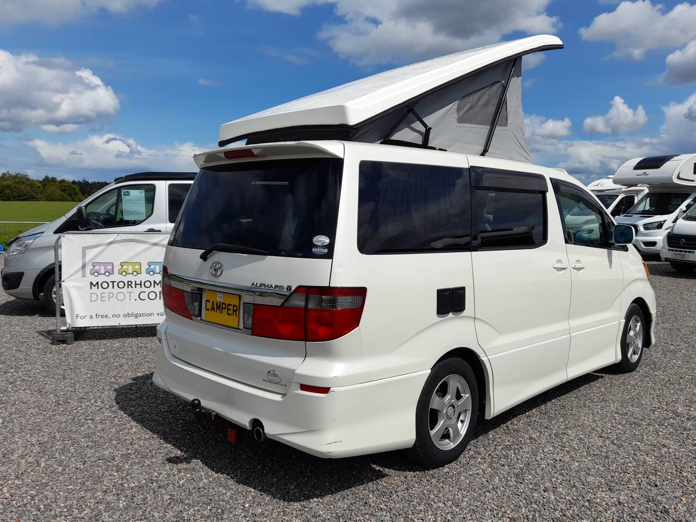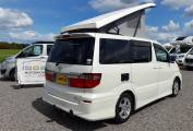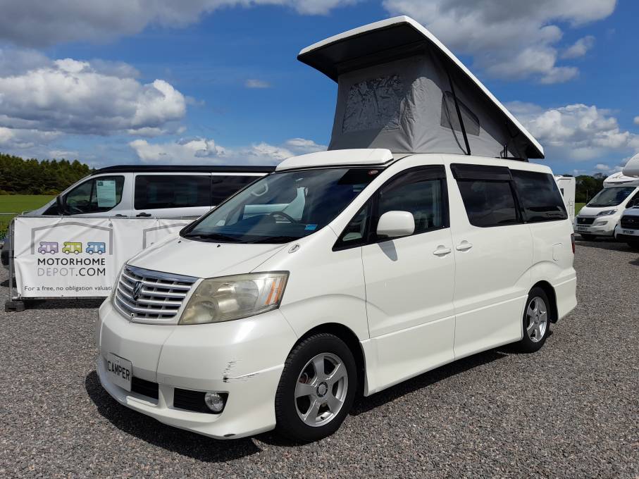 This 2003 Japanese Imported Alphard has been professionally and tastefully converted by Direct Campers.The inside benefits from Cab Air con, Auto transmission, Propex gas heater, 12v Fridge and Grill.This 4-berth camper could benefit from some external body repairs; however, these are mainly superficial.Long MOT and recent Habitation service carried out.