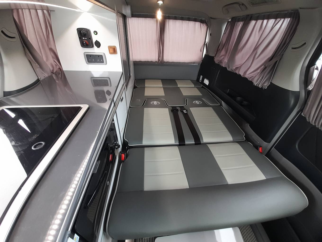 Sleeping – Comfortable rock and roll bed with under bed storage, separate sleeping area within the elevating roof.