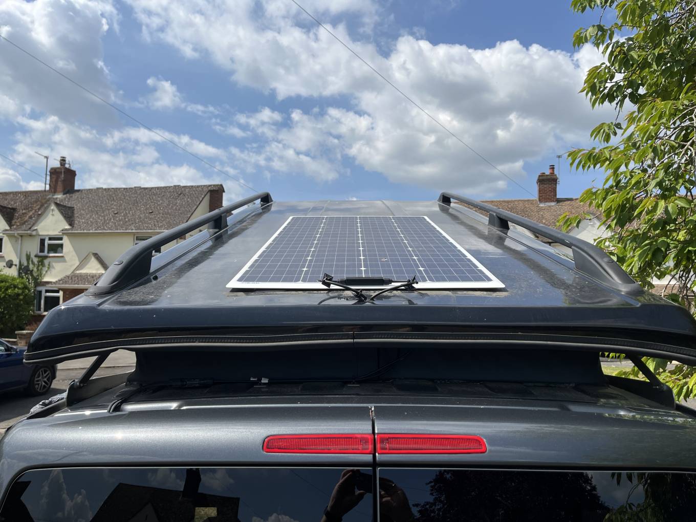 12V leisure battery system with 100Ah battery, 240V hook-up, smart charger, and multiple USB/12V sockets.