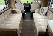 Living – Bench seating, moveable table, Cab seats with arm rests and swivel bases, Black out and fly screens on all windows, 12v and 240v sockets, TV point.