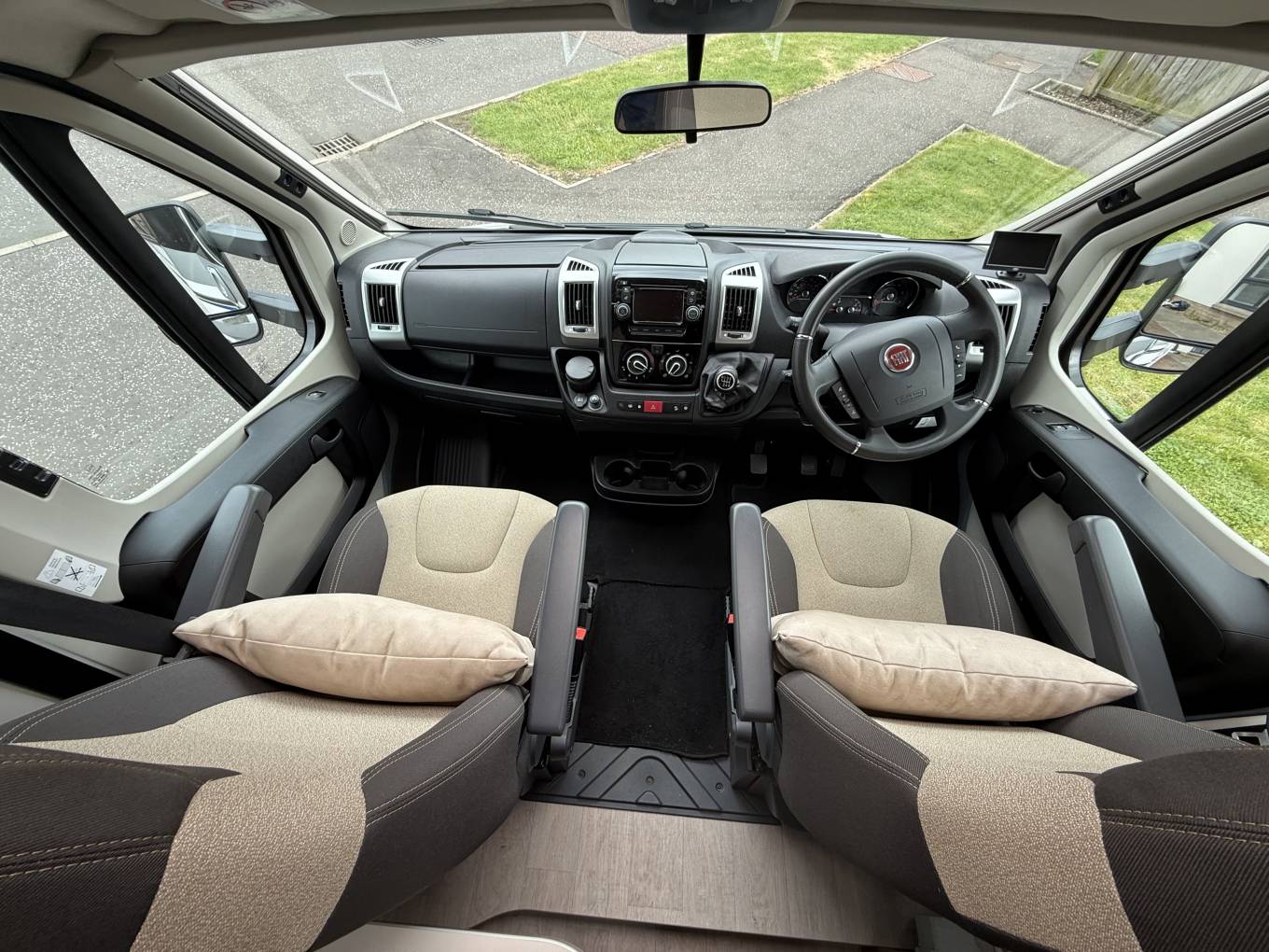 The motorhome is built on the Fiat Ducato 2.2 litre Diesel Chassis with a MAM weight of 3500kg allowing anyone with a standard UK driving licence to drive it. Its length is 7.4 metres and its width is 2.3 metres.