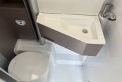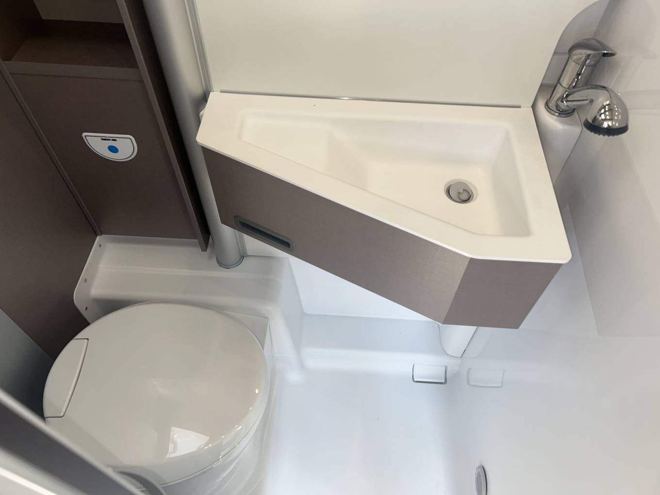 The C644 is really comfortable to sleep in - with a very large pull down bed at the rear. This measures 205cm x 150cm giving you loads of room for a good nights sleep. The rear sofas also convert into another double bed - making it the genuine 4 berth. This Burstner has a goo sized washroom which includes Thetford cassette toilet, sink and a shower will a clever pull round screen. Heating and hot water is provided by the excellent Truma I-net system - operating on electric hook up and diesel.