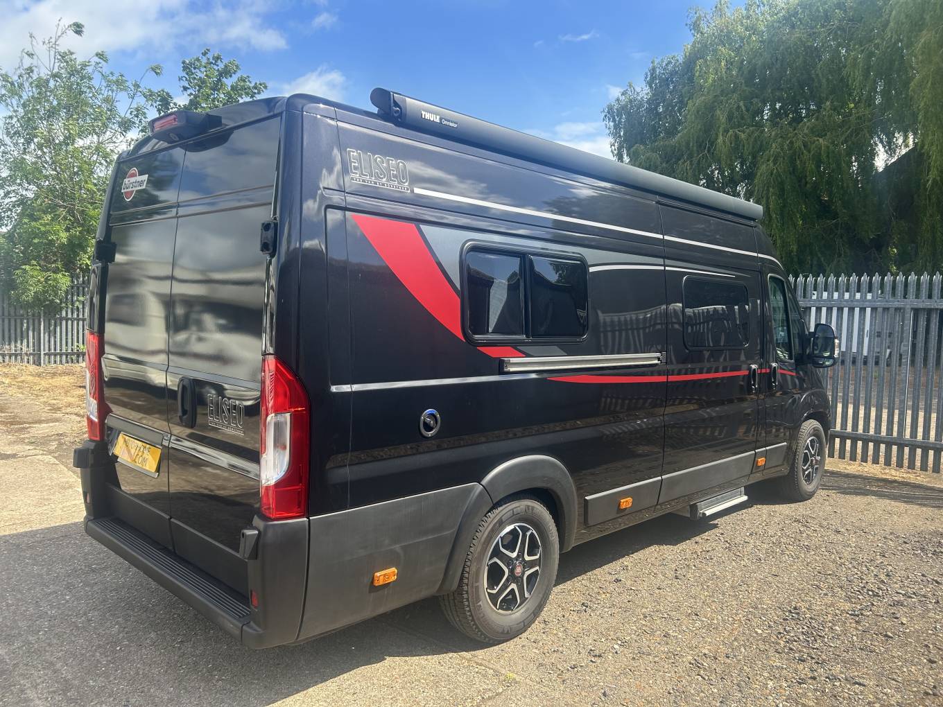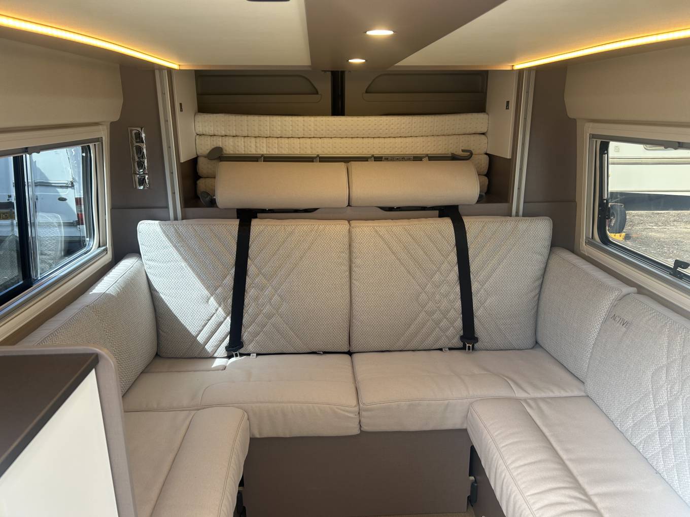 Externally this motorhome comes with large wind-out awning, solar panel and 2 leisure batteries. It also comes with a rear garage area, ideal for and tables and chairs.