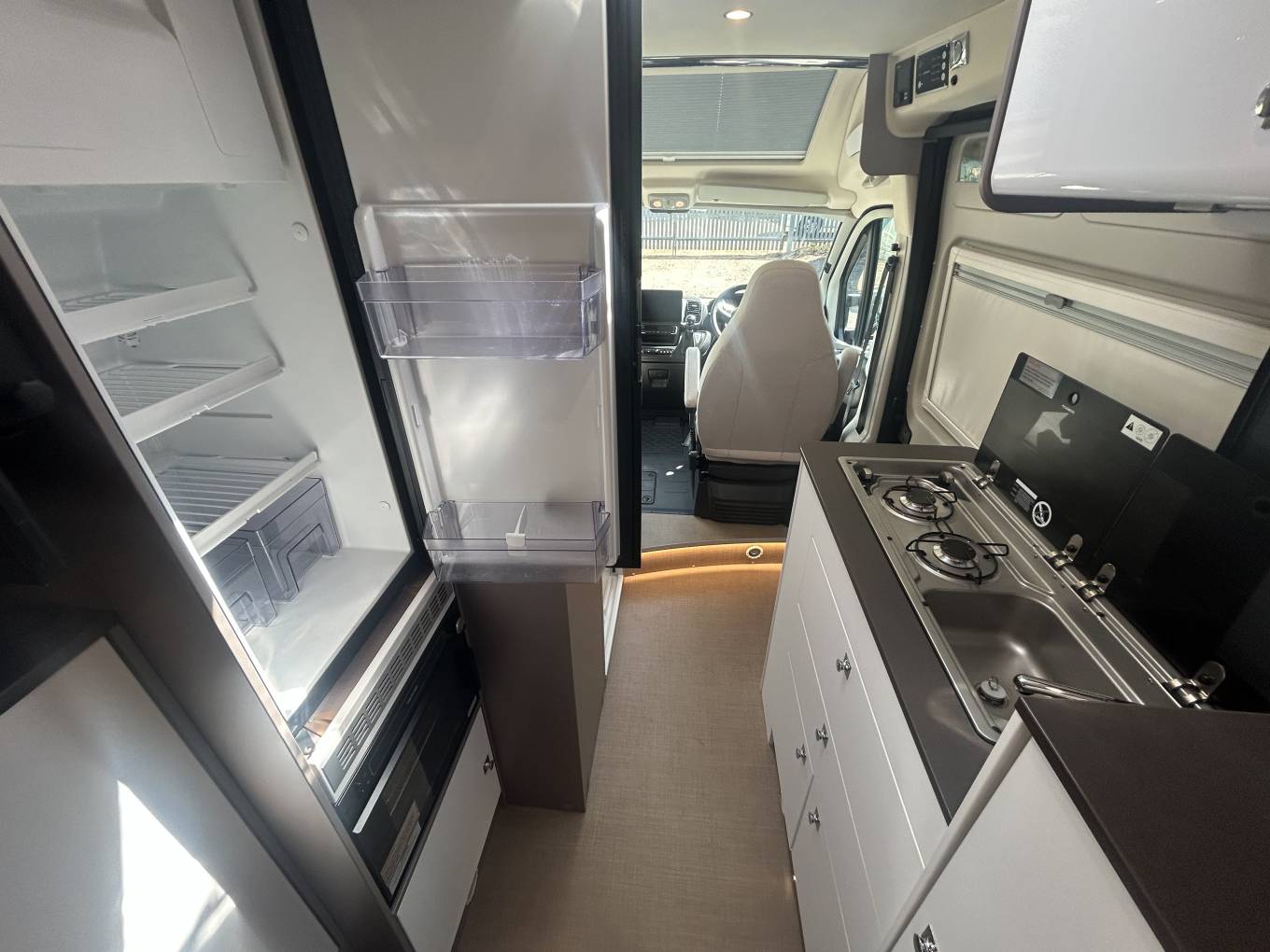 The internal layout on the motorhome is brilliant and definitely makes the most of the space available. Starting at the rear you have a lovely U shaped sofa - the ideal place to sit and relax. There is loads of room to move inside the motorhome setting it apart from most of the other panel style vans. Moving forward you have a well equipped kitchen area featuring and oven and grill, two burner gas hob, good sized fridge with separate ice box and sink with mixer tap.