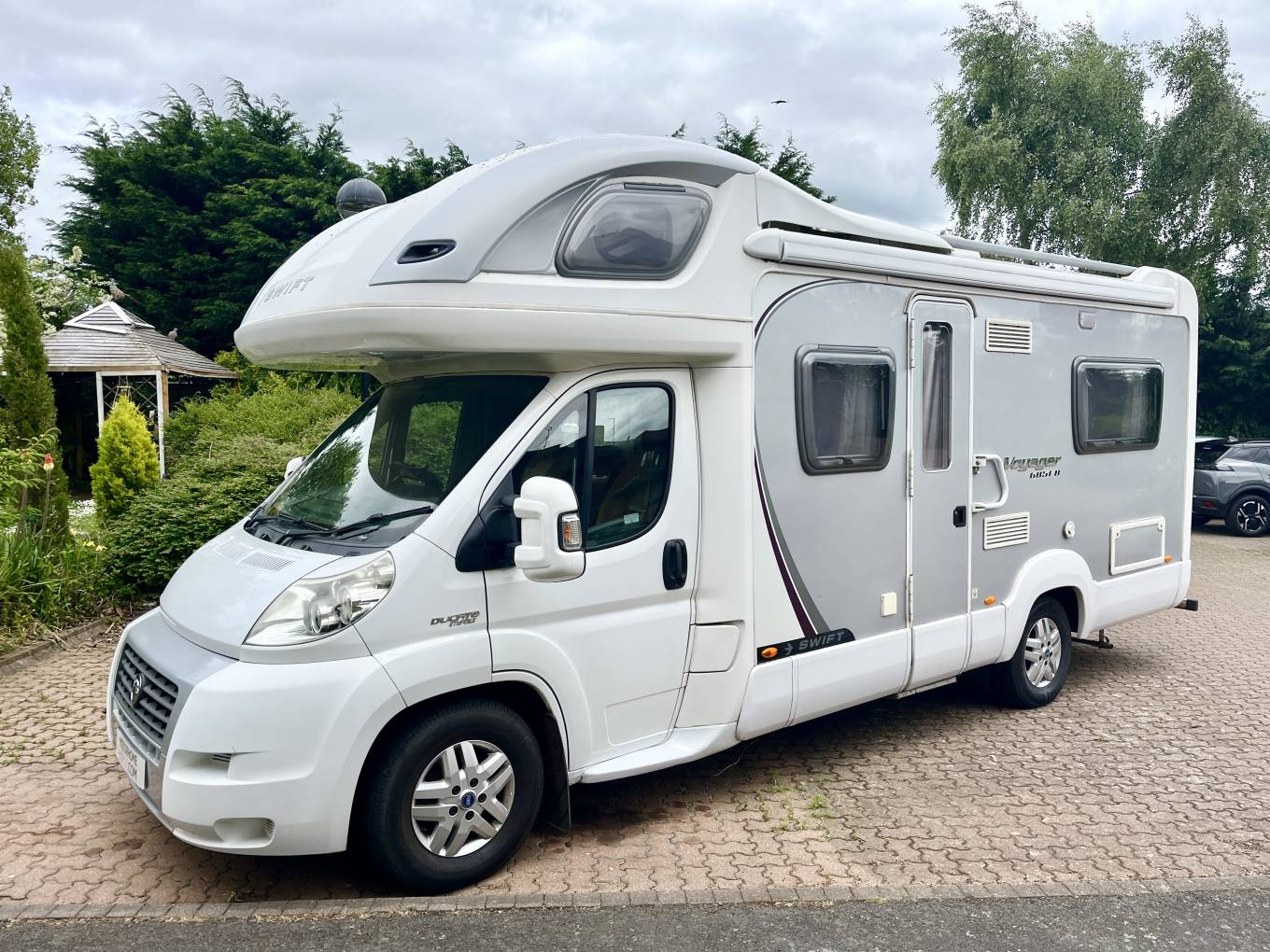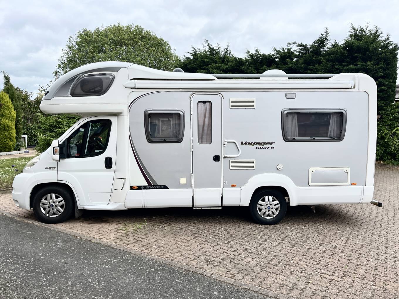 Here is our September 2008 registered, 58 plate Swift Voyager 685 FB 4 berth / 4 belt motorhome, it is based on the Fiat chassis with the 2.3L diesel engine mated to the 6 speed manual gearbox. This van is 4005 Kg so requires a C1 licence to drive.
