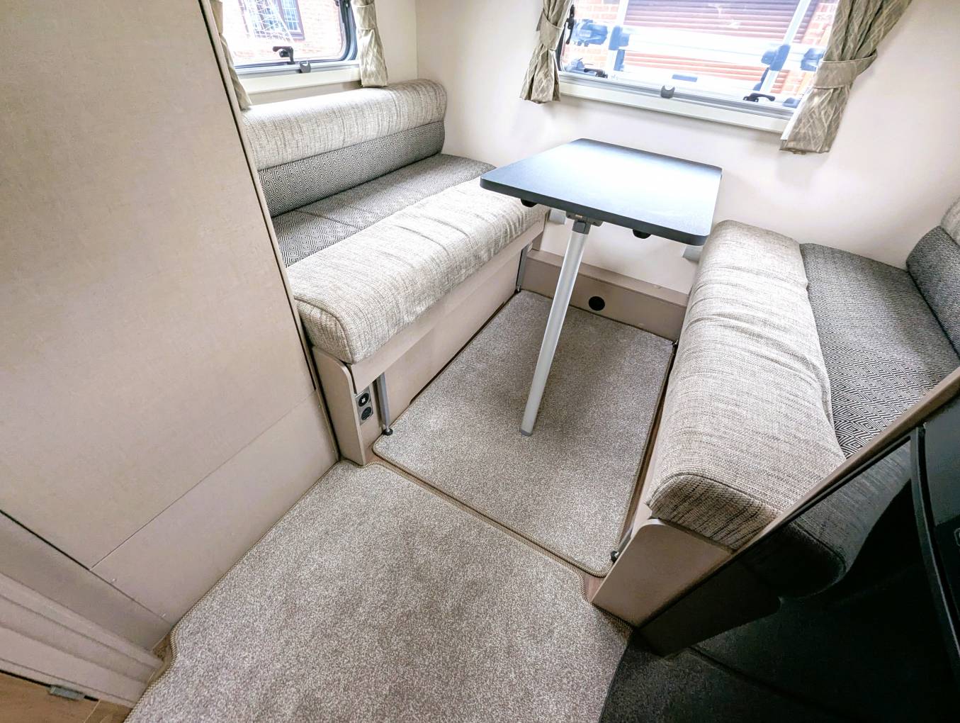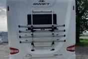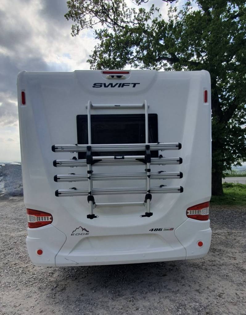 The exterior is in very good condition as might be expected. A four bike rack, and external lockers add to the practicality. A solar panel helps to keep the leisure battery in good condition.