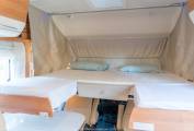 The Hymer is built on the excellent Fiat Ducato chassis, with a 2.3-litre engine and manual 6 speed gearbox benefitting from cruise control for effortless travel. Inside the cab, you'll find air conditioning, a multimedia system with satellite navigation, a reversing camera, Bluetooth connectivity, cruise control and airbags for both driver and passenger. Above the cab, there’s a luxury drop-down bed that can be used as a double bed or is easily converted into two single beds with the pull-out slide extensions.