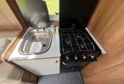 Inside, the Atlanta campervan maximizes space through clever design. It seats and sleeps two people, with an easily convertible dinette area. The interior features a kitchenette with a duel fuel hob, oven, sink, fridge freezer, microwave, and storage cupboards, enabling meal prep on the go. The layout is smart and ergonomic, with LED lighting and practical finishes that make daily use simple and enjoyable.