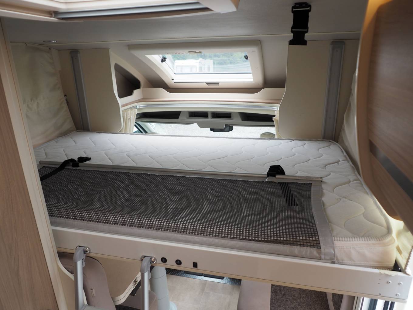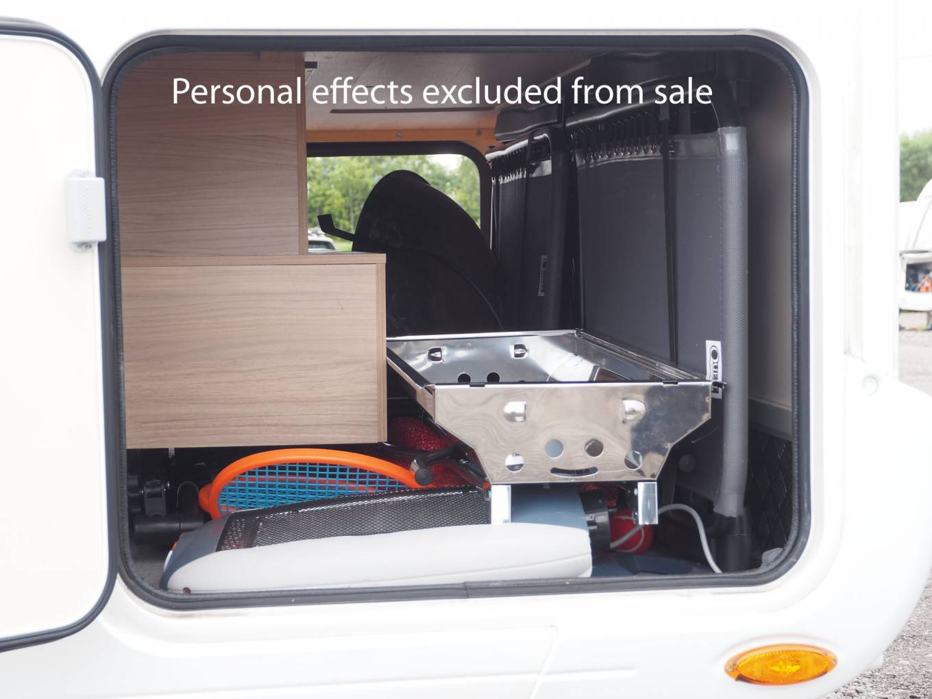 With modern styling and plenty of lighting options the Rimor is a comfortable place to be. Outside, there is a large rear store with access both sides, a gas compartment with refillable gas bottles and 2 x 390W solar panels totalling 780 watts. There is also a 2000W inverter fitted.