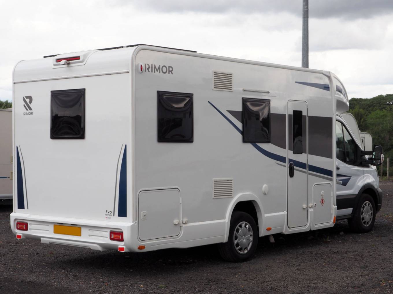 Highly practical and well specified one owner automatic motorhome from Rimor, offering substantial accommodation and storage and up to 5 berths. The 7 metre Evo offers a rear lounge, a forward dinette, central kitchen and washroom. There a two electrically lowered double beds, one over each dinette. There are 4 x 3 point seatbelts and one 2 point belt and up to five berths available. Plated at 3500KGs it can be driven on a standard car licence and controls are light thanks to the latest generation Ford chassis with fully automatic gearbox.
