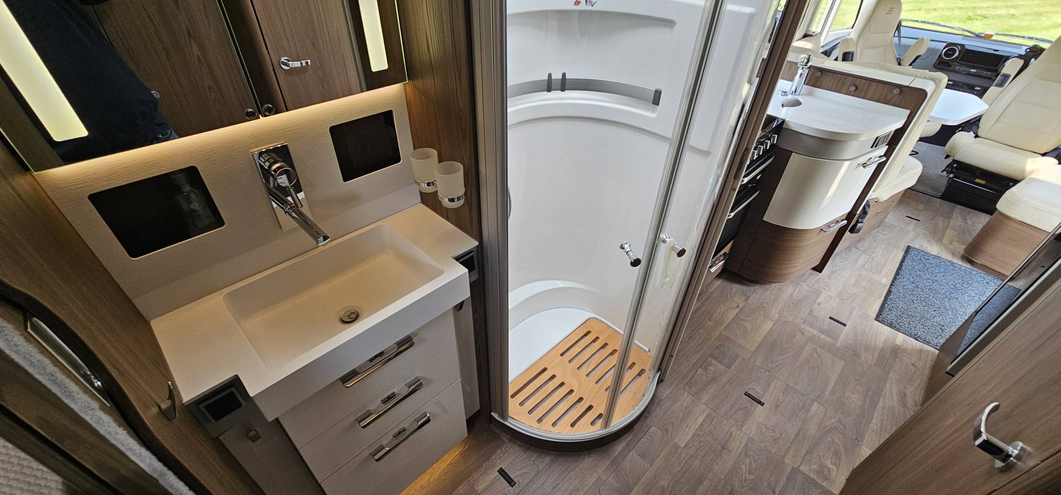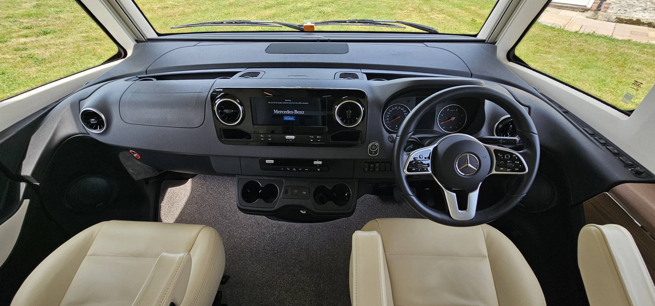DRIVER ASSISTANCE PACKAGE PLUS - Mercedes Benz MBUX 10.25" Multimedia system with Apple Carplay, steering wheel multifunction buttons, DAB, Touchscreen as well as reversing camera, leather steering wheel, 9-G TRONIC automatic transmission inc Hold function and Active Distance DISTRONIC +. - DRIVER COMFORT PACKAGE 1 Mercedes Benz Semi automatic climate control TEMPMATIK, Electric parking break and Reinforced front Axle - AUTONOMY PACKAGE LITHIUM HYMER - Smart Battery System (135Ah Lithium) inc additional 18A charger and battery computer, Third habitation battery (135 Ah AGM) and Inverter 12 V to 230V, 1800W with network priority circuit. - ARTIC PACKAGE SMART Warm water heating, Heat exchanger for warm water heating, Warm water floor heating, garage floor heating, insulating mat for cab footwell, Auxiliary heating and Chequer plate floor as well as felt trim in the rear garage. - LIVING COMFORT PACKAGE 3 Wooden shower slats, fitted sheets for the rear bed, 4 x pillows and additional sockets: 4 x 230 V 1 X 12 V 1 x Twin USB as well as comfort lighting