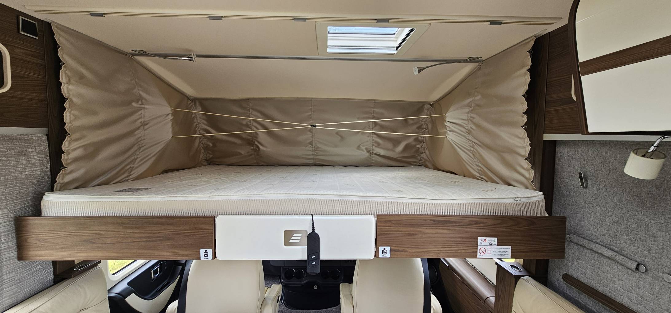 E&P Hydraulic Levelling system - Electric vent in kitchen - Electric Front roller Shutter - Roof Air Con 2400W -Frame Extension inc 450kg garage load - Pull down bed with single bed feature - Electric. -Solar Panel 2 X 90w - Comfort Plus Habitation door. - Electric step on cabin door. - Additional cushion between longditudal single beds. - External Shower - Ceramic Toilet - 6 meter Thule awning in silver casing. - Cooker / Oven combination. - External Gas BBQ point. - Toilet Vent - 32" LED TV - A second LED TV in bedroom. - Carpet for cab and habitation area. - Exterior body colour - Silver - 16" Mercedes Benz alloy wheels (Black) - Velvet Ash furniture - Upholstered in Napoli Leather. - Garage Storage system (removable). - GASLOW Fixed tank twin system 2 x 11kg bottles. - META TRAK tracker system. - Auto Watch alarm.