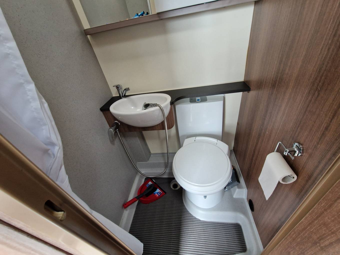 Washroom - Electric flush cassette toilet - Sink - Shower.