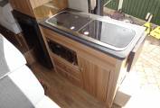 To the right of your entrance door is the side kitchen consisting of a Twin Burner Gas Hob, Grill, a Sink with Hot & Cold-water supply and a Three Energy Source Dometic Fridge.