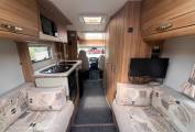 To the rear, you'll find a spacious U-shaped lounge, ideal for relaxing or entertaining with a TV included. This area easily converts into a large and comfortable double bed or two singles. At the front, swivel cab seats expand the living space and enhance the social feel of the layout.