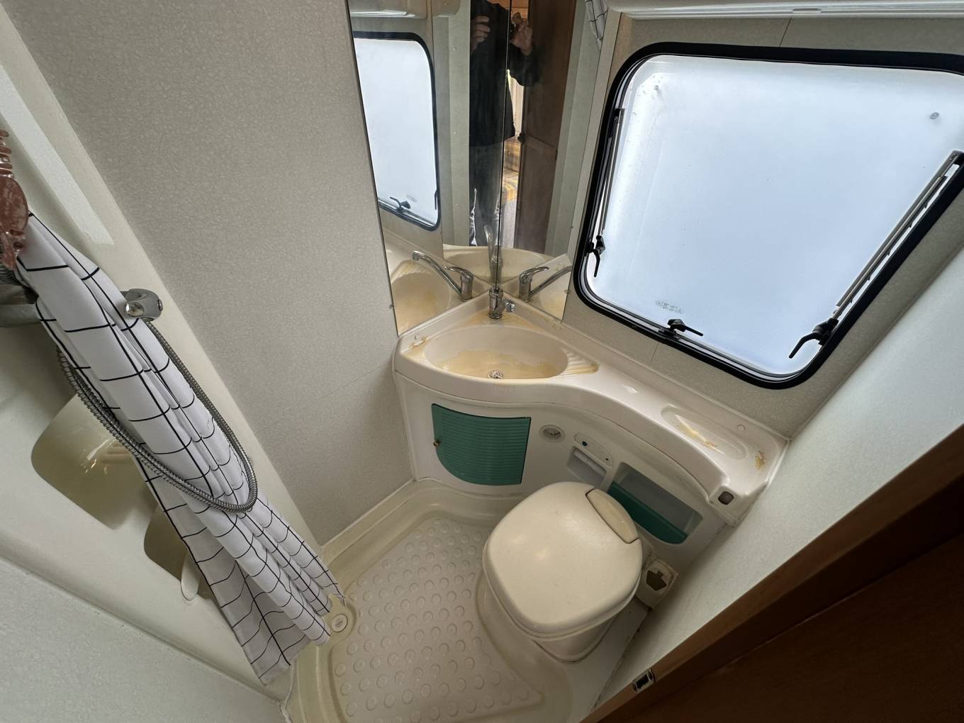 Heating and hot water are supplied by the reliable Truma combi system, ensuring comfort year-round. There’s a cassette toilet in the washroom, and a full wardrobe for clothing and gear.